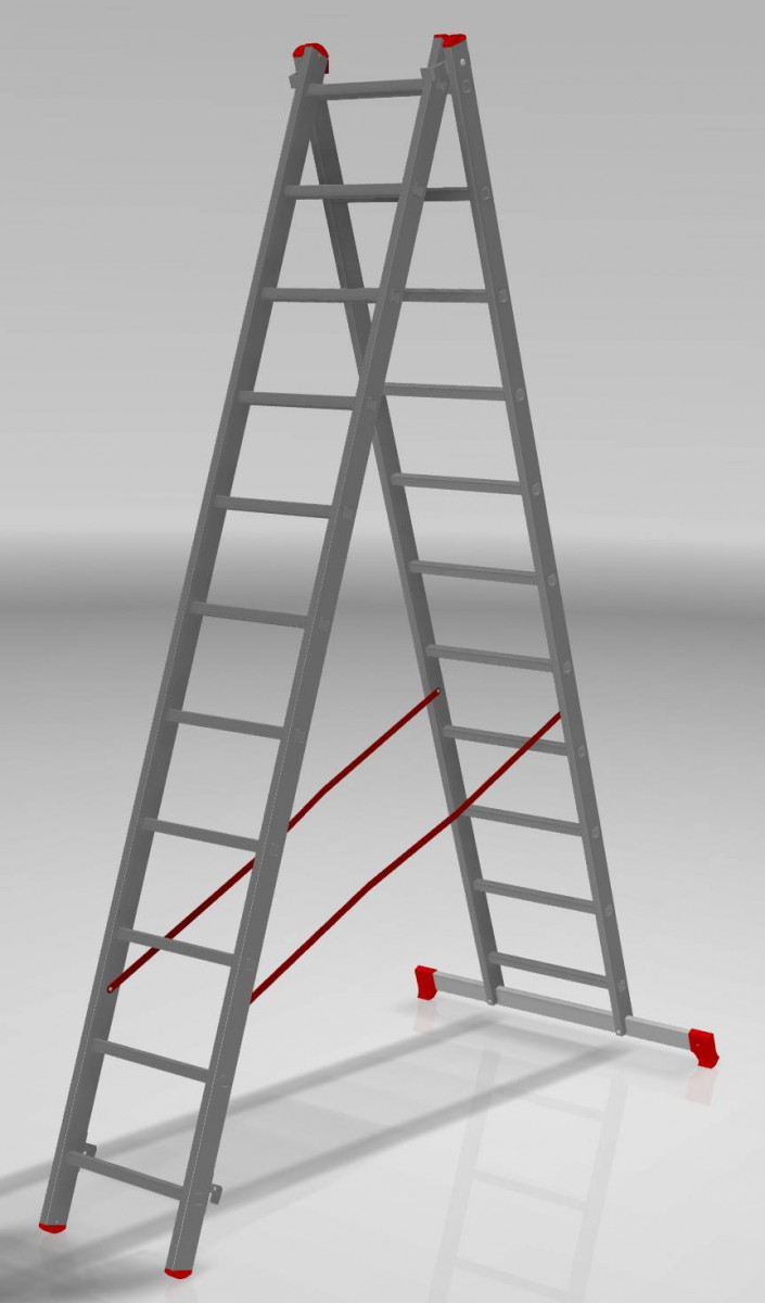 стойки и ступени изготовлены из прессованного профиля, многократная развальцовка в соединении ступеней со стойками обеспечивает высокую прочность и долговечность, рифлёные ступени с шагом 260 мм для безопасного подъёма и спуска, алюминиевые направляющие кронштейны надёжно удерживают выдвижную секцию во всех рабочих положениях, зацепы с автоматическим фиксатором, широкая поперечная траверса обеспечивает высокую устойчивость, надёжно закреплённые на стойках и траверсе пластиковые наконечники препятствуют скольжению, поставляется в термоусадочной плёнке, предохраняющей от повреждений"