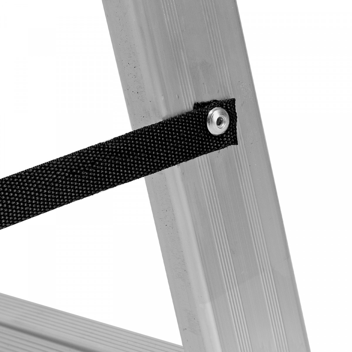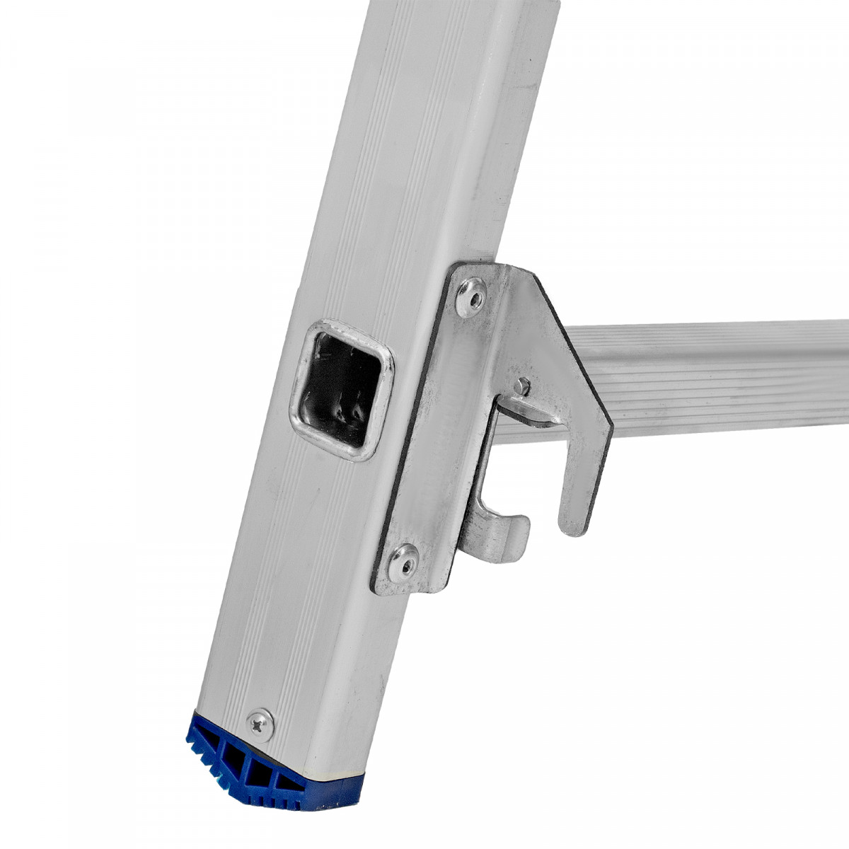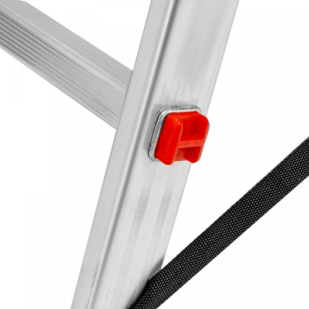 • Устойчивость — благодаря съемному стабилизатору лестница ровно стоит на горизонтальной поверхности.