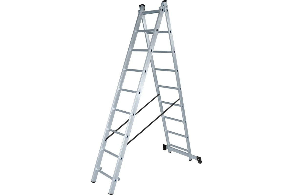 Лестница алюминиевая двухсекционная ЛА 2х9 Вихрь - надежный помощник для выполнения строительных работ и ремонта.
