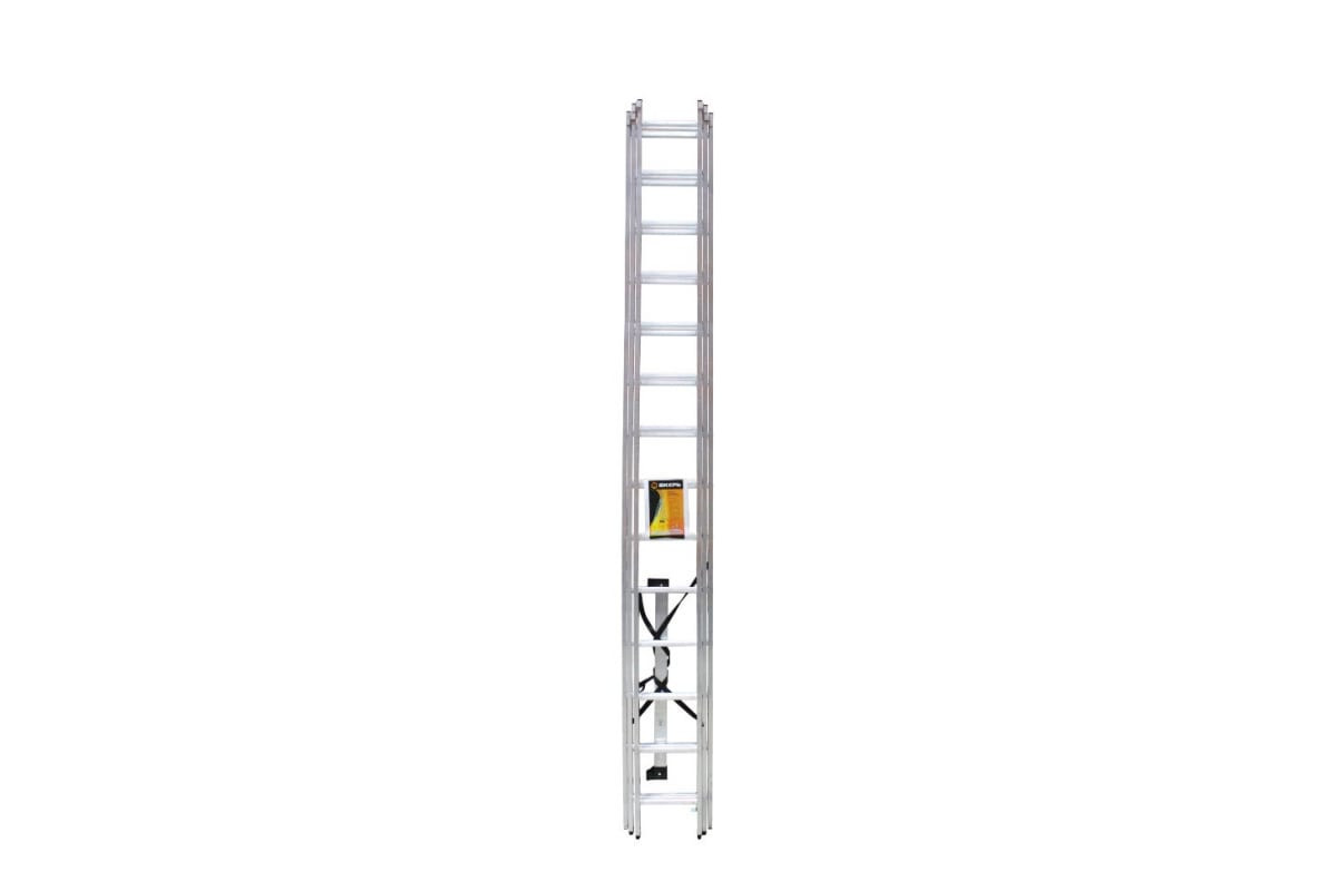 Трёхсекционная алюминиевая лестница предназначена для выполнения различных работ на высоте до 10.86 метров.