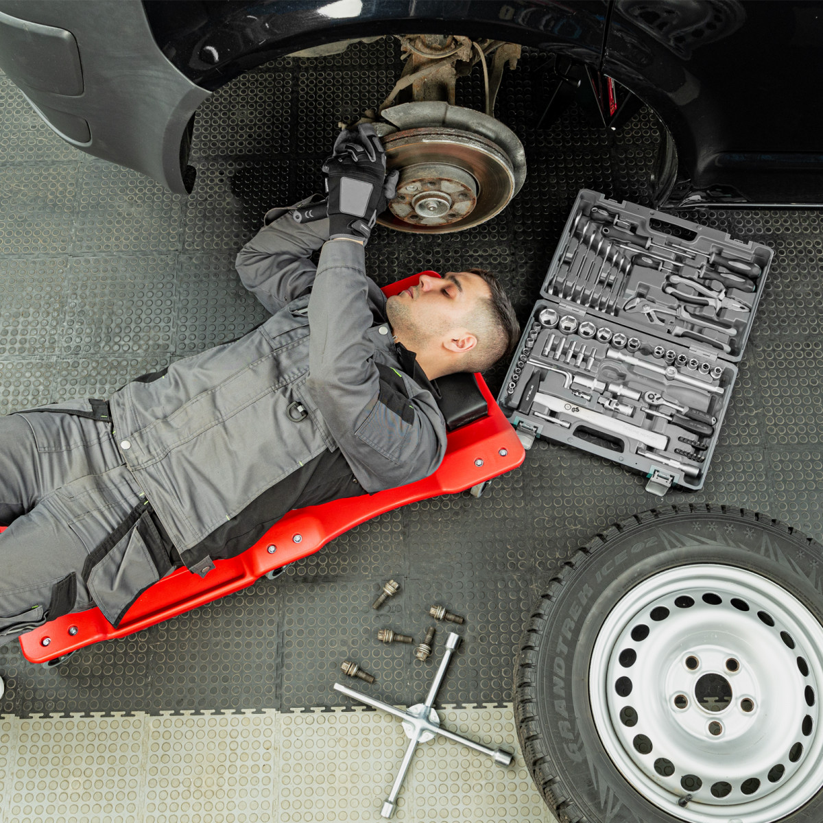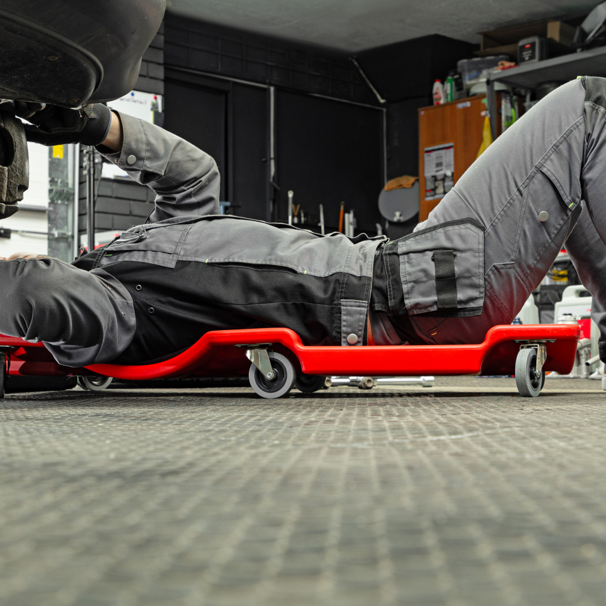 • Благодаря специальному отверстию на корпусе можно легко доставать лежак из-под автомобиля.