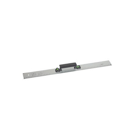 Линейка изготовлена из жесткого алюминиевого профиля, имеет удобную пластмассовую рукоятку. Два встроенных глазка дают возможность измерения уровня поверхностей.