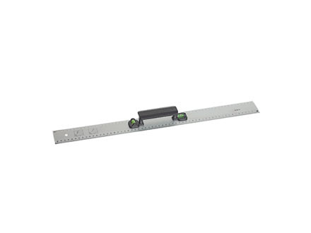 Линейка изготовлена из жесткого алюминиевого профиля, имеет удобную пластмассовую рукоятку. Два встроенных глазка дают возможность измерения уровня поверхностей.