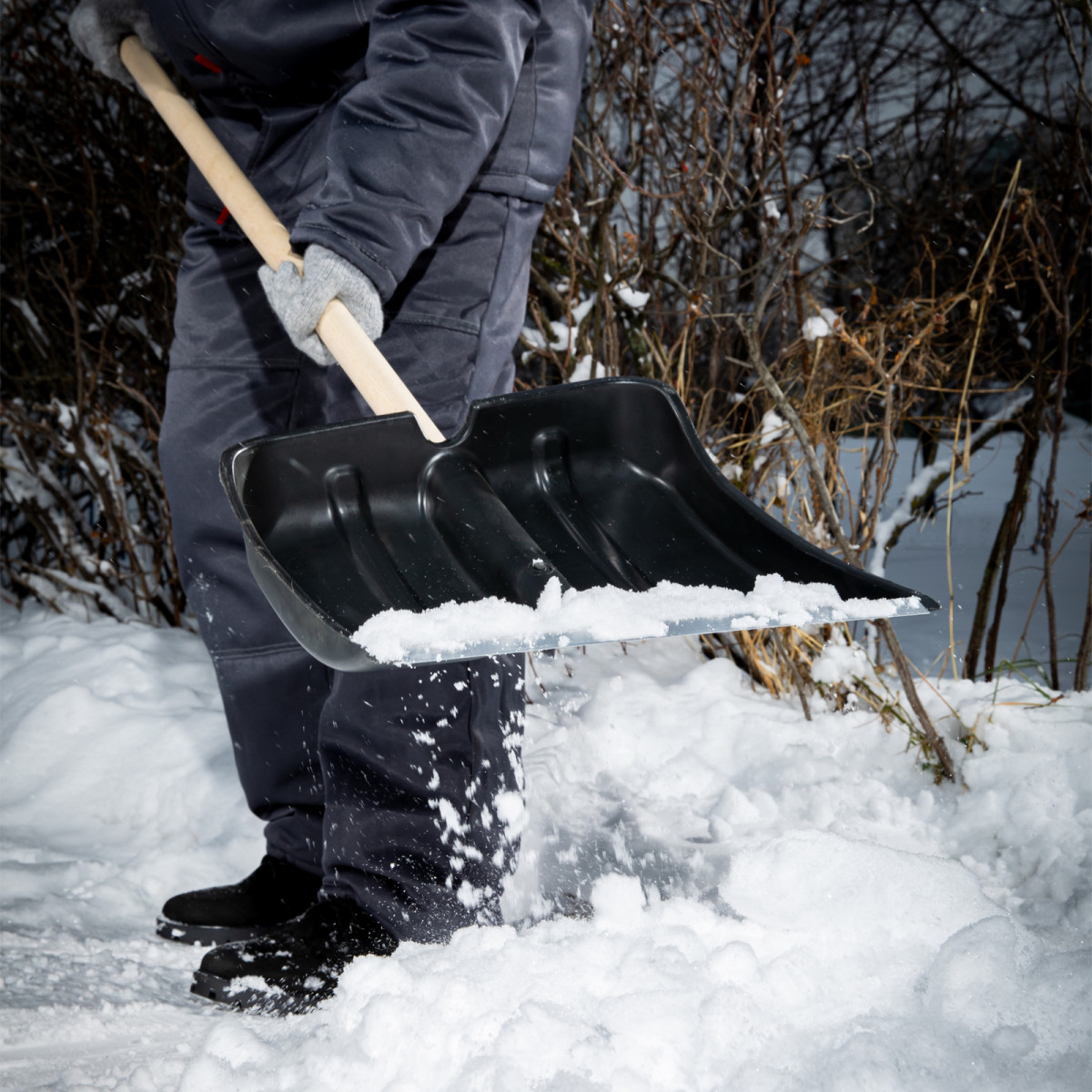 Лопата для уборки снега пластиковая, 380х385х1420 мм, деревянный черенок