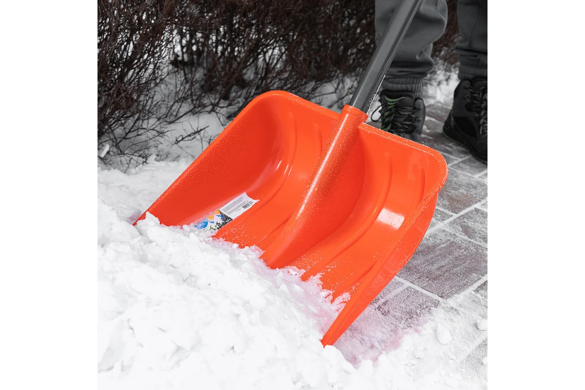 Лопата для уборки снега пластиковая 400х405х1380 мм стальной черенок усиленная СИБРТЕХ