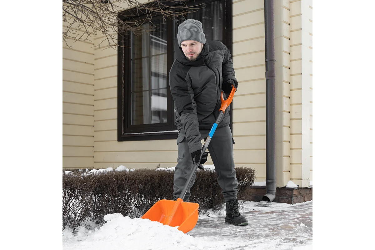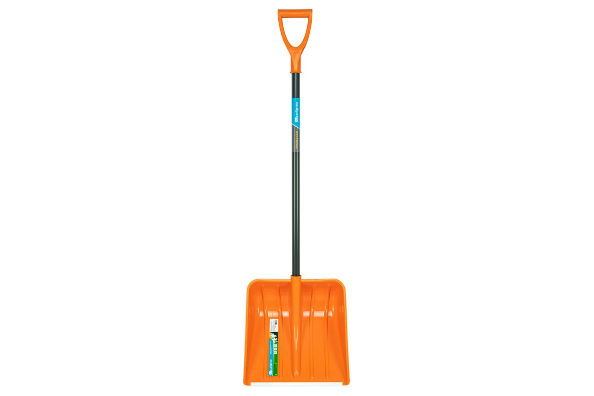 Пластиковая лопата Сибртех 61666 размером 400 х 405 х 1380 мм, со стальным черенком, используется для уборки снега на занесенных дорожках, тротуарах, подъездных путях. Вместительный усиленный ковш с высокими бортиками позволяет быстро справиться с работой. Преимущества: - Надежность — рабочая плоскость, усиленная ребрами жесткости, выдерживает повышенные нагрузки без риска излома. - Высокий ресурс — ковш из морозостойкого полипропилена сохраняет рабочие свойства при температуре до -30 °C. - Устойчивость к истиранию — кромка ковша защищена алюминиевой окантовкой, которая легко проникает в плотный снег и наст. - Защита от механических воздействий и коррозии — алюминиевая накладка покрыта порошковой эмалью.