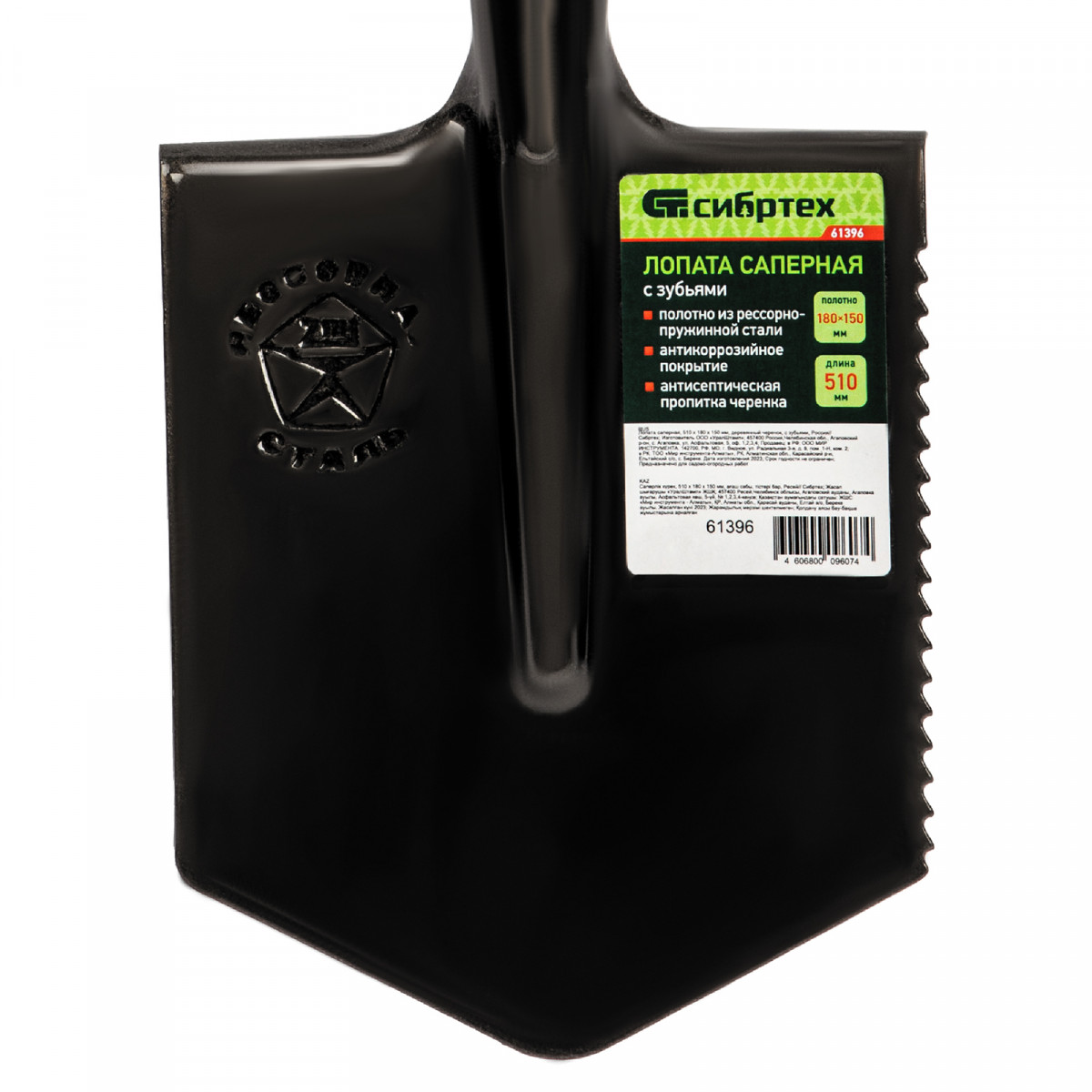 Лопата саперная, 150х180х510 мм, деревянный черенок, с зубьями, Сибртех