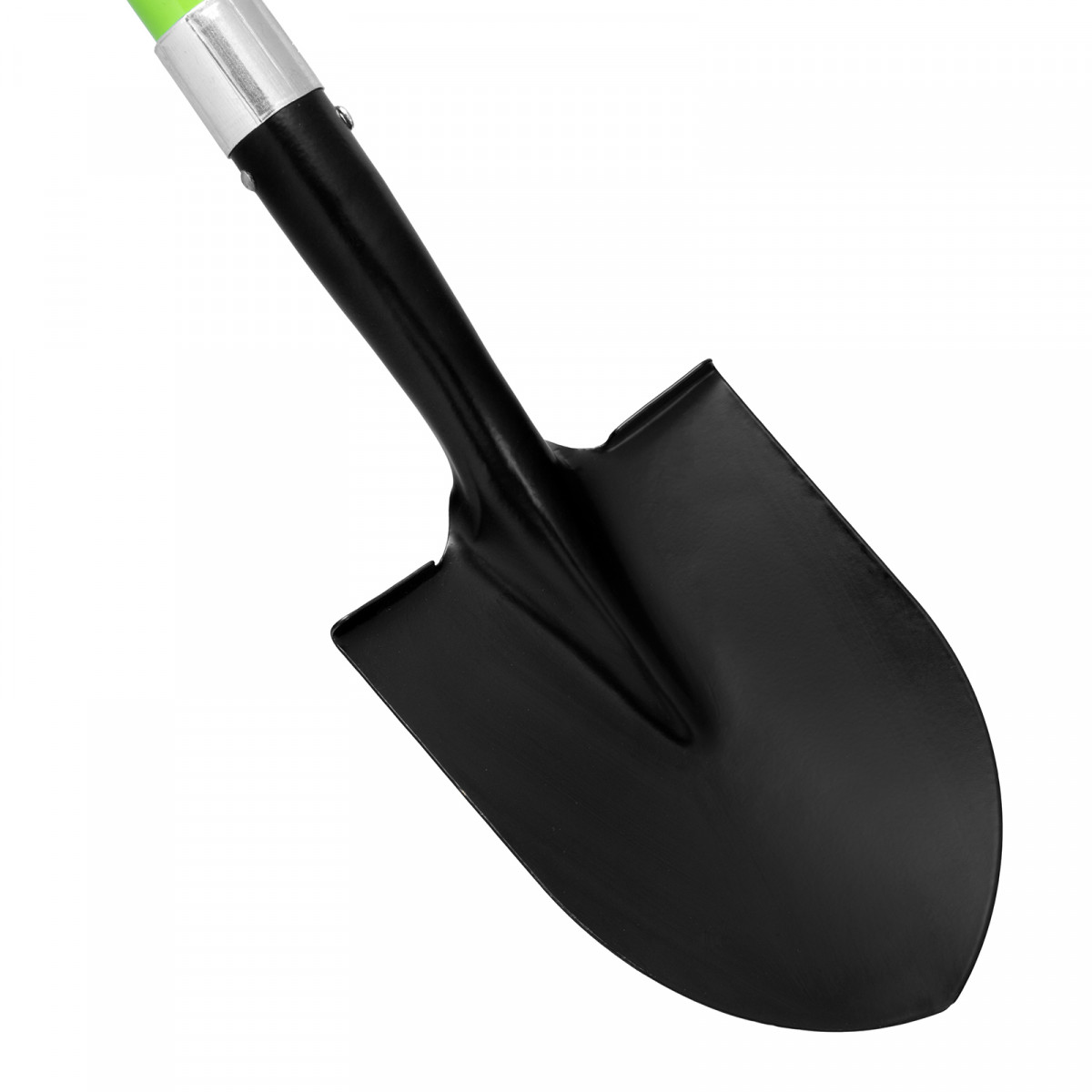 - Продуманная конструкция — фибергласовый черенок не утяжеляет лопату и не разрушается под действием ультрафиолета, а удлиненная цельновырубная тулейка предотвращает его излом.