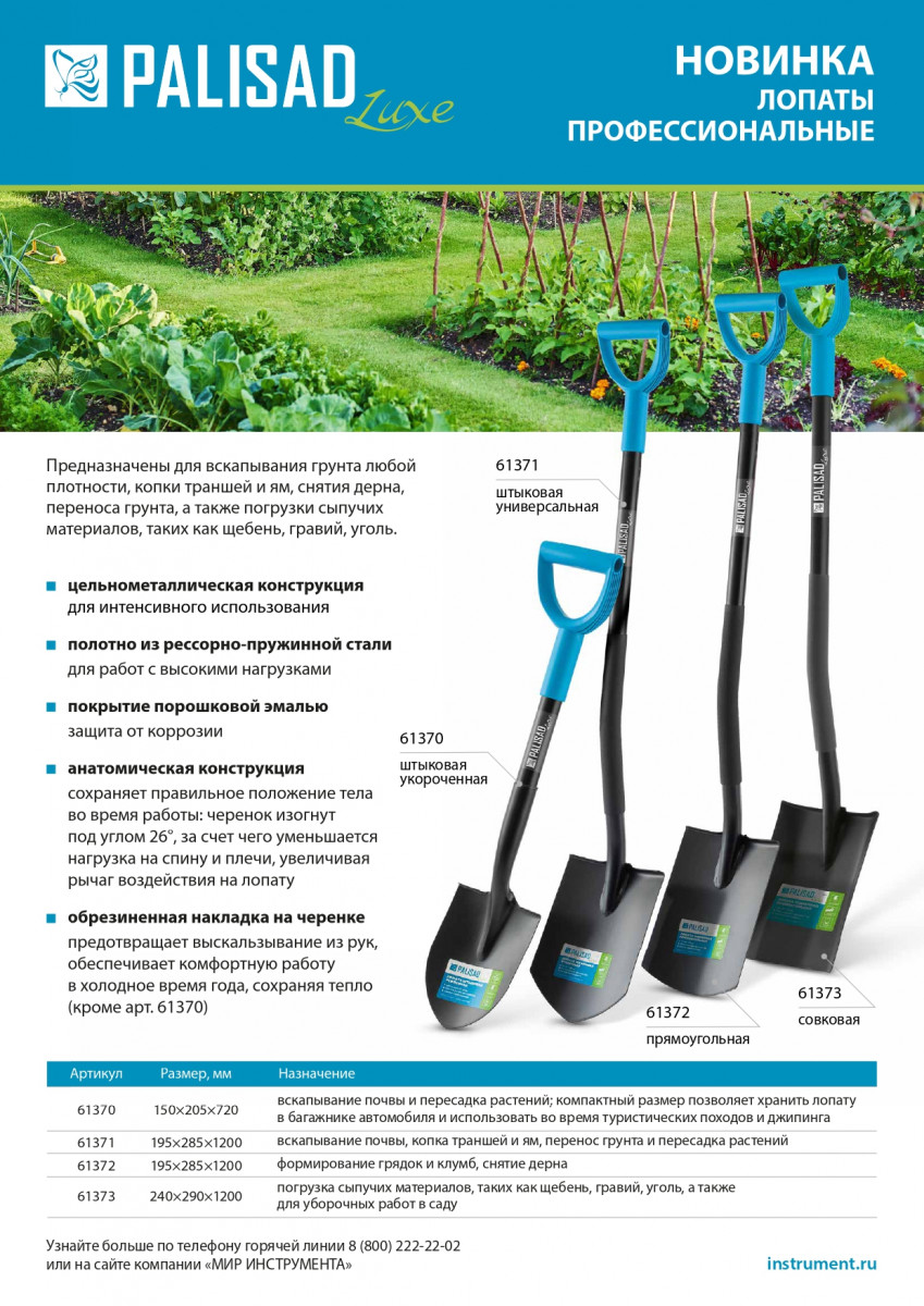 • Эргономичность — черенок овального сечения с рукояткой обеспечивает надежный захват и уменьшает нагрузку на кисть.