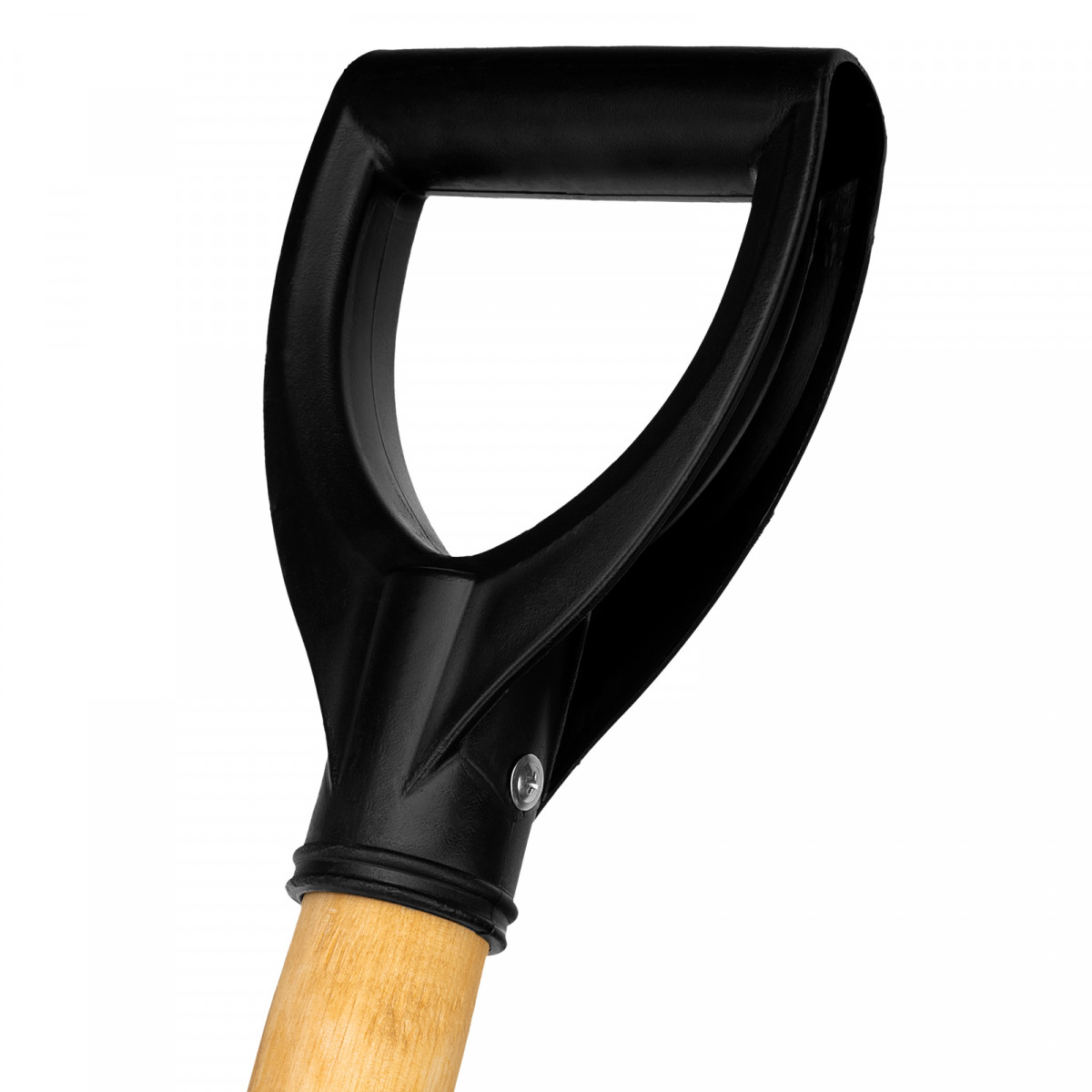 Прочное полотно из закаленной стали обеспечивает высокую долговечность лопаты.
