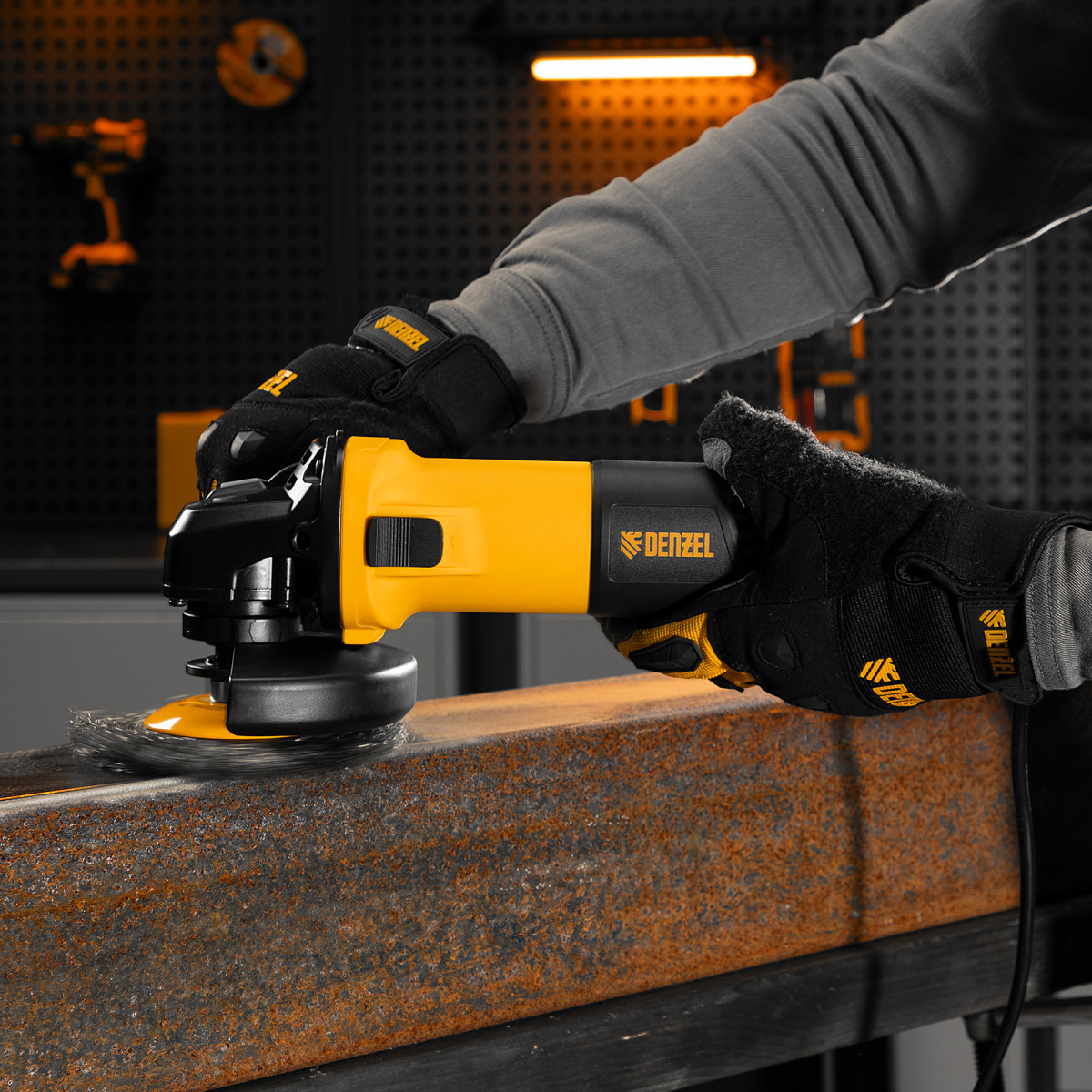 Угловая шлифовальная машина Denzel AG125-1100 26906 мощностью 1100 Вт совместима с оснасткой максимальным диаметром 125 мм, поддерживает частоту вращения шпинделя от 3000 до 11000 об/мин, благодаря чему эффективно справляется с обработкой и зачисткой поверхностей, а также резкой, шлифовкой металла толщиной до 35 мм и камня. Пригодится дома, в гараже и на даче.