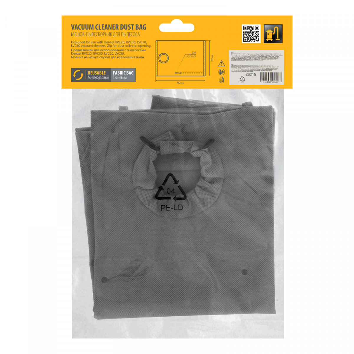 Мешок тканевый многоразовый для пылесосов Denzel RVC20, RVC30, LVC20, LVC30 Denzel