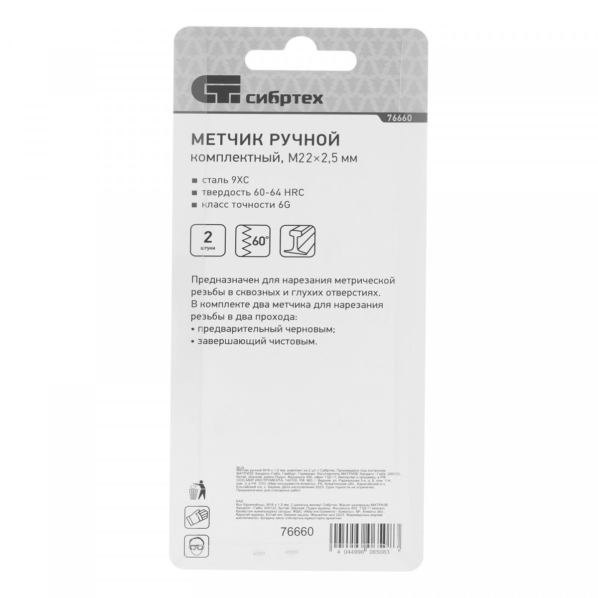 - Высокая точность резьбы — в наборе 2 метчика: черновой для первого прохода и чистовой для финишной доводки.