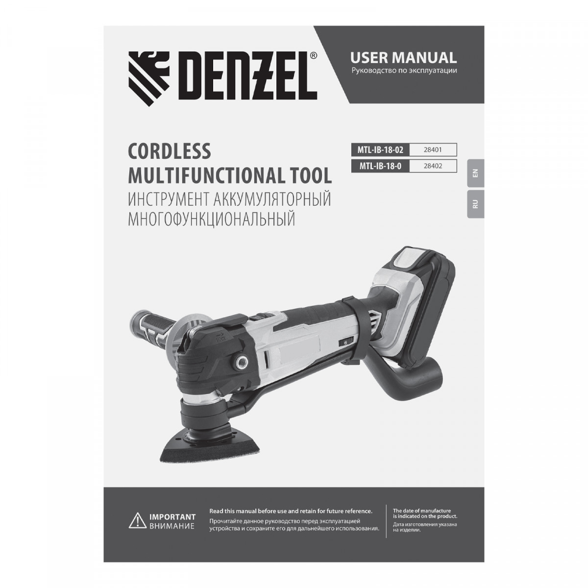 Многофункциональный инструмент аккумуляторный MTL-IB-18-0, Li-Ion, 18 В Denzel