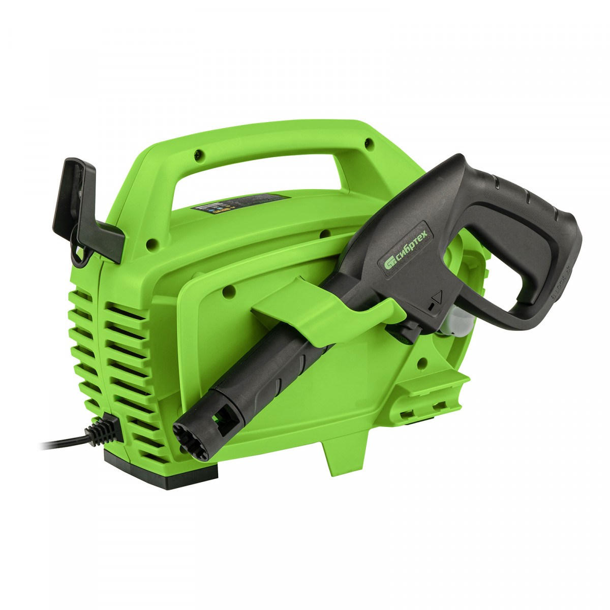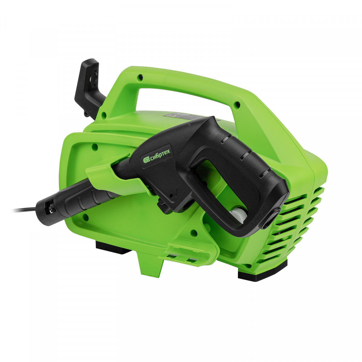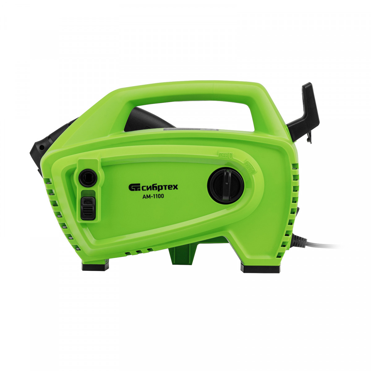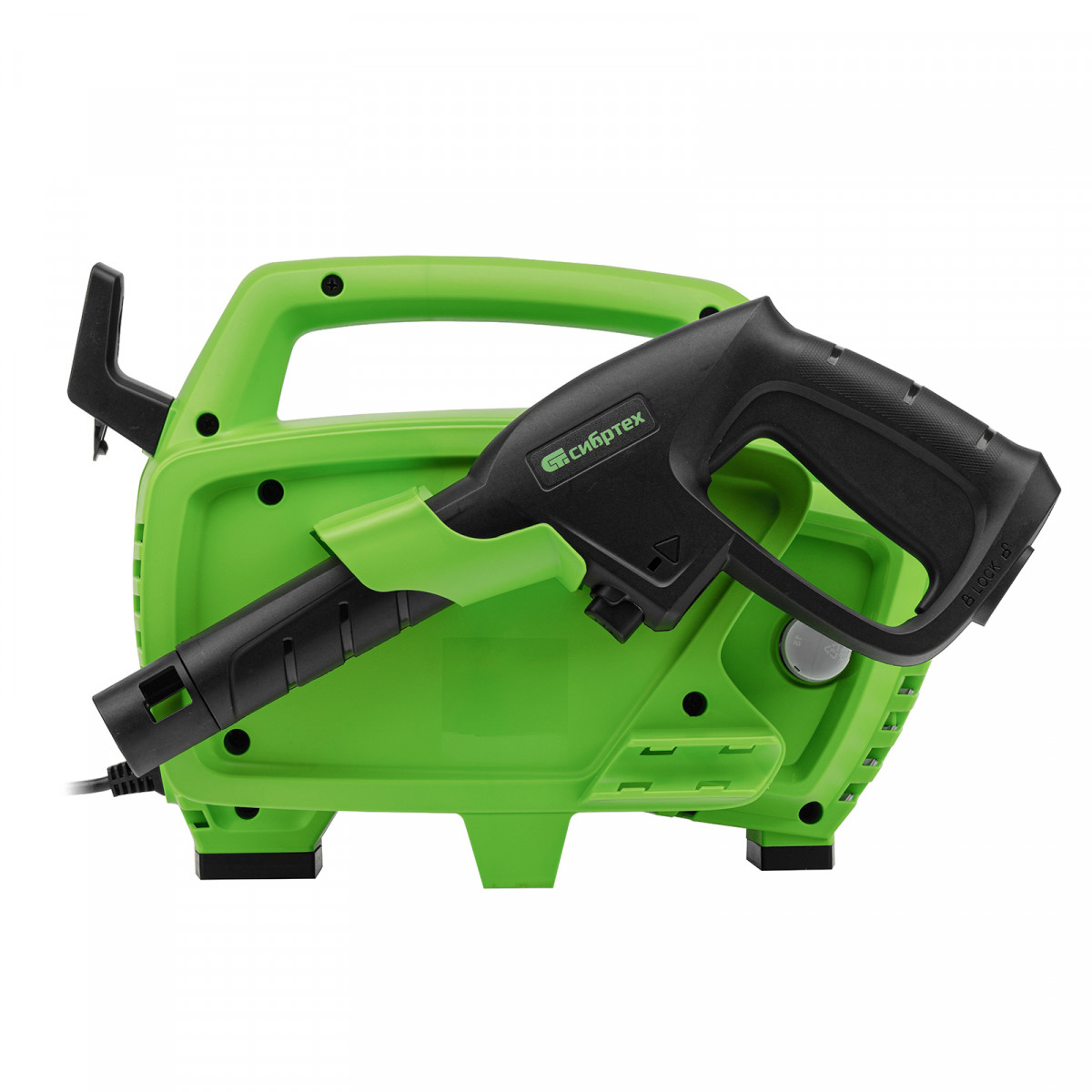 • Продуманное хранение и транспортировка — на корпусе имеется удобная ручка, предусмотрены специальные кронштейны для кабеля и шланга.