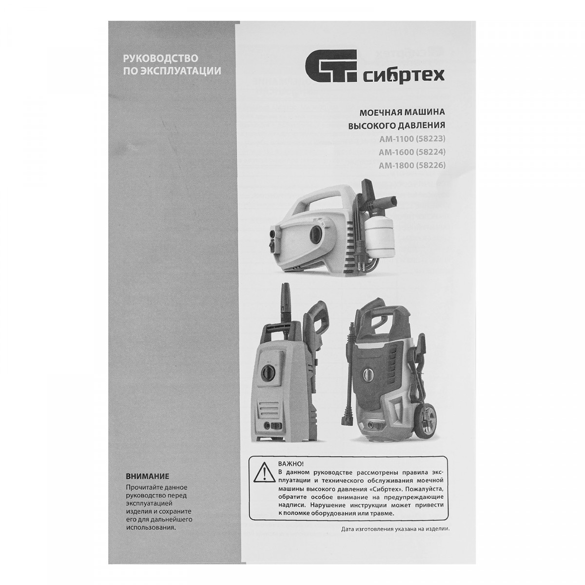 Моечная машина высокого давления АМ-1100, 1100 Вт, 90 бар, 280 л/ч, переносная Сибртех