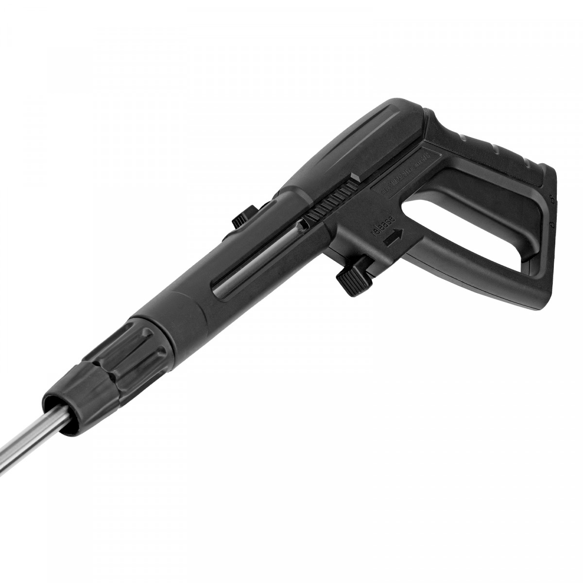 • Защита от случайного пуска — перед началом работы необходимо разблокировать рычаг моечного пистолета.