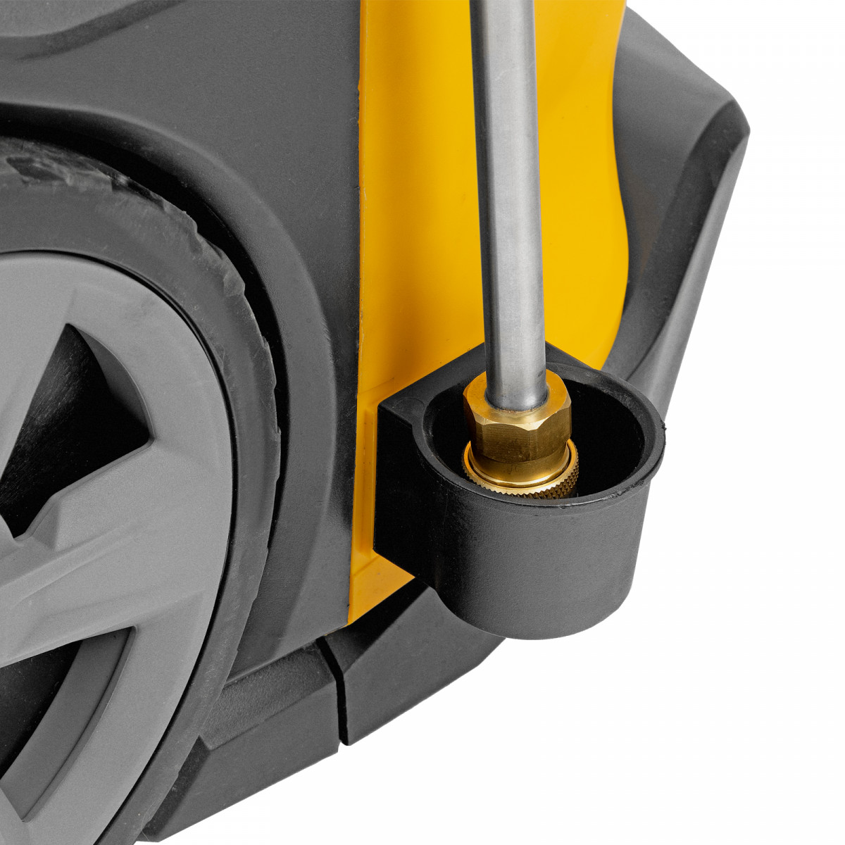 - Простая подготовка к работе — удлинитель пистолета с быстросъемным креплением позволяет легко изменить угол распыла, установив нужную форсунку, или перейти к использованию пеногенератора.