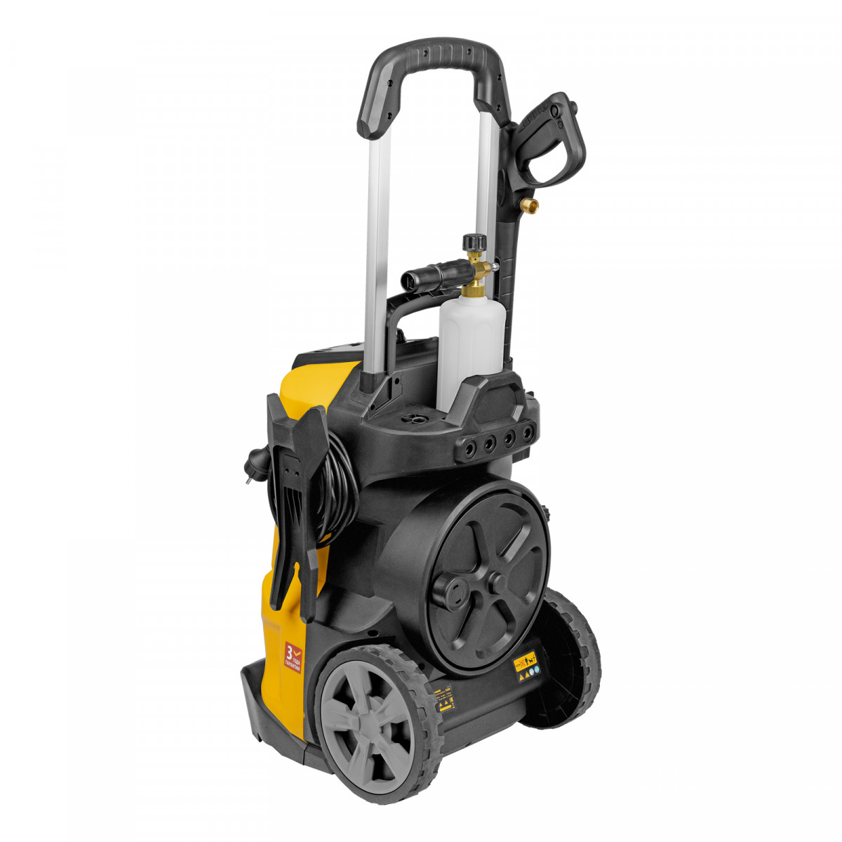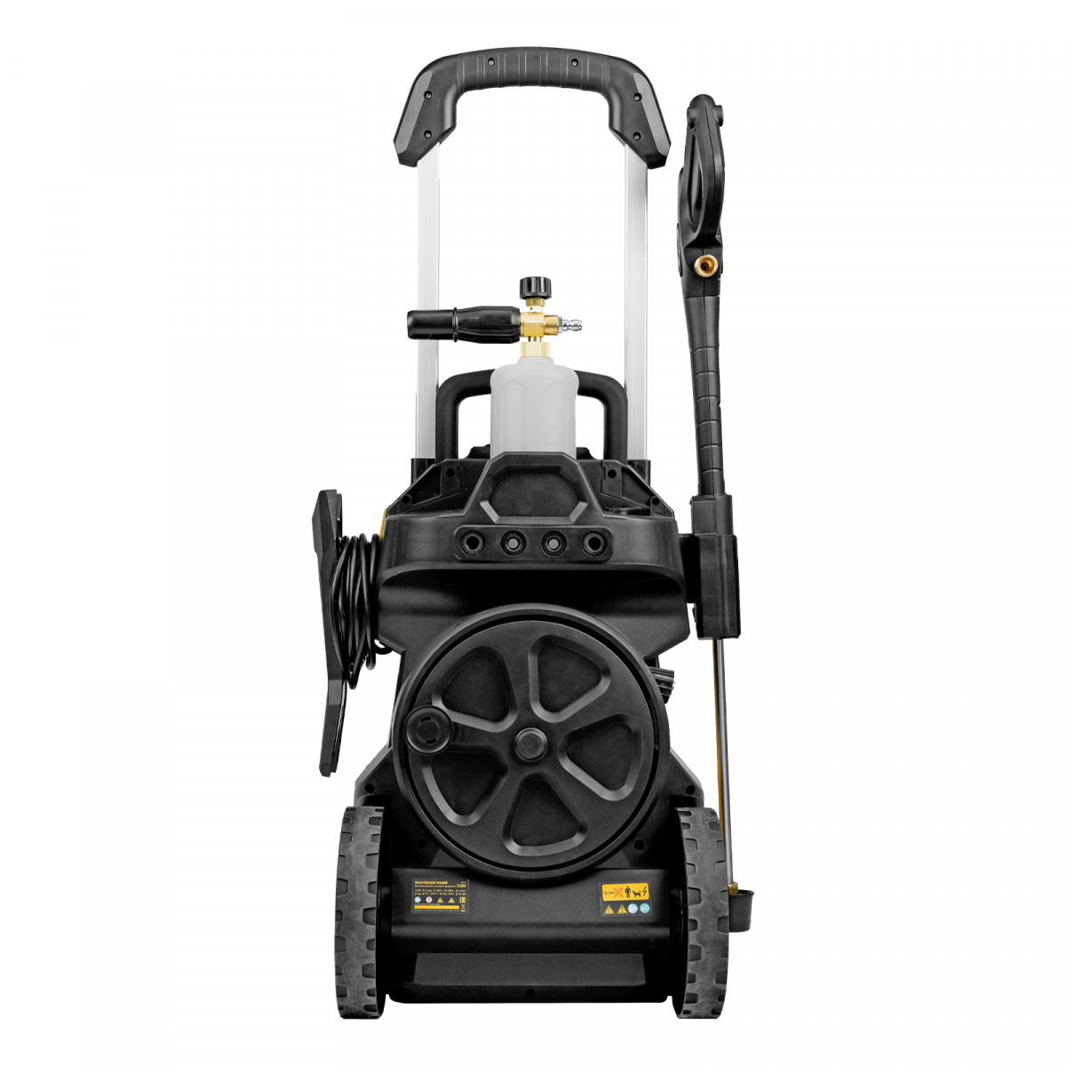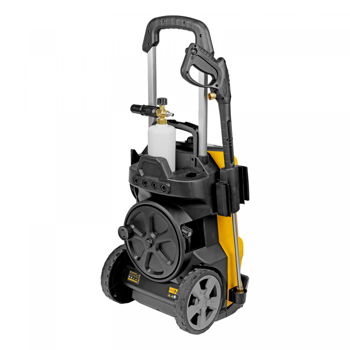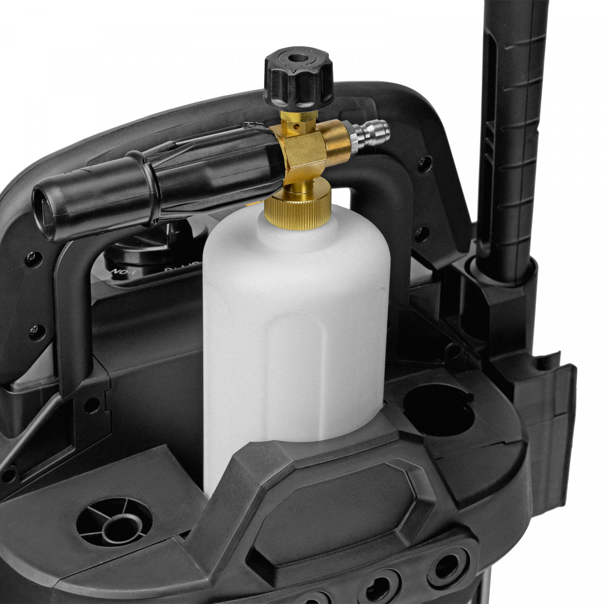 - Удаление сильных загрязнений — в комплект поставки входит пеногенератор с улучшенной функцией пенообразования, латунным корпусом и увеличенным бачком для моющего средства объемом 1000 мл.