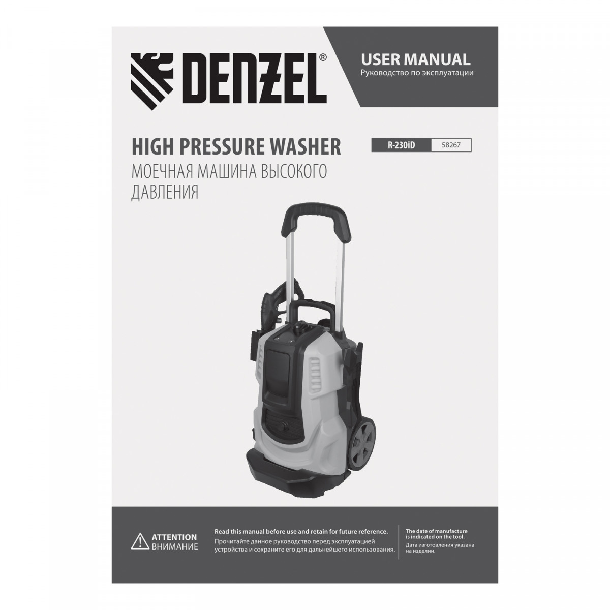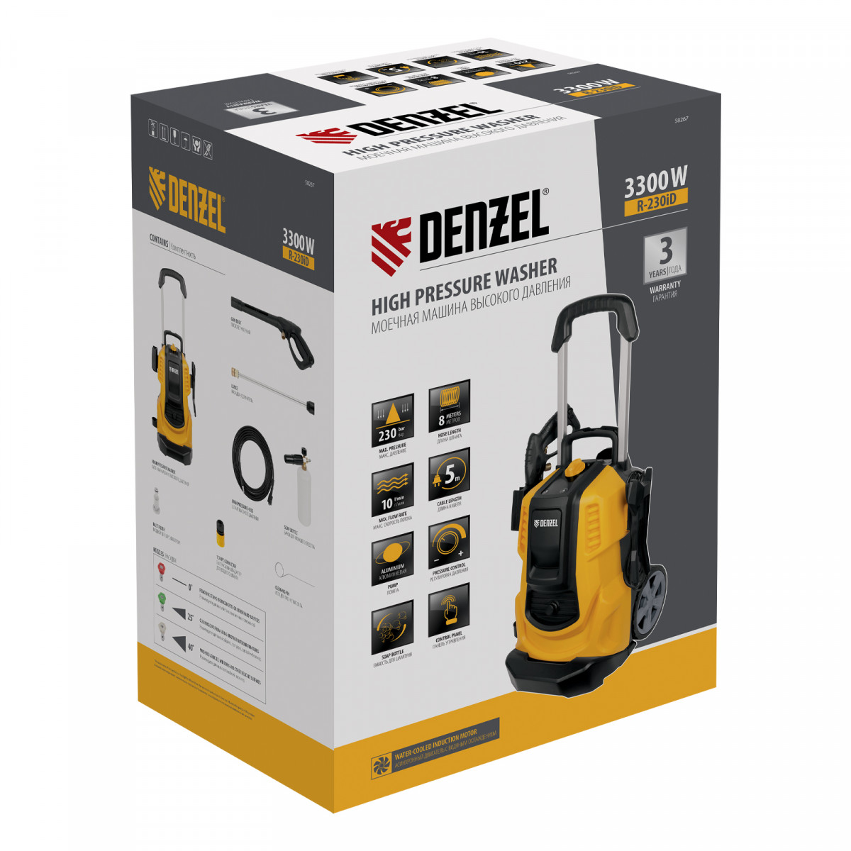 Моечная машина высокого давления R-230iD, 3300 Вт, 230 бар, 600 л/ч, асинх. двиг., бараб.// Denzel