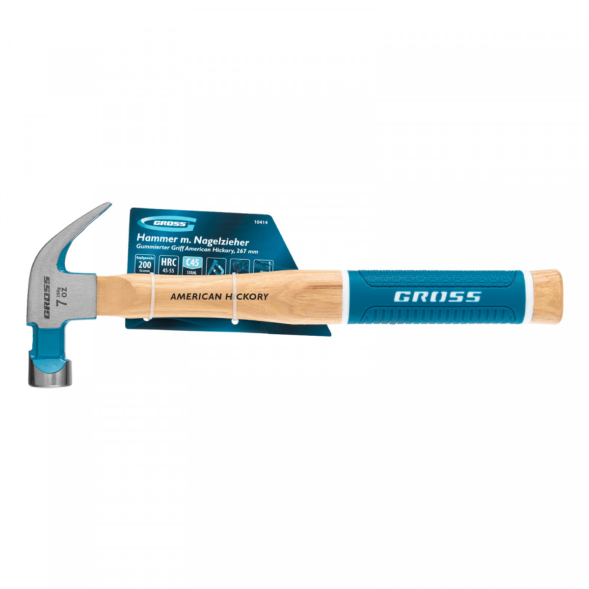 Молоток-гвоздодер, 200 г, угол 45, магнит, обрезиненная рукоятка American hickory GROSS