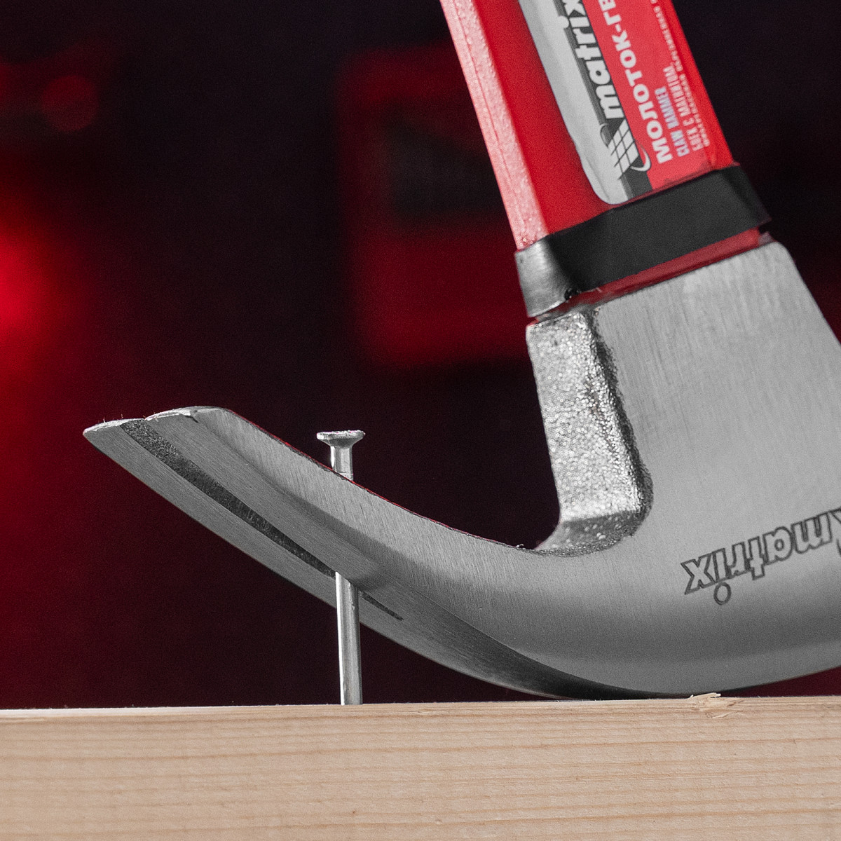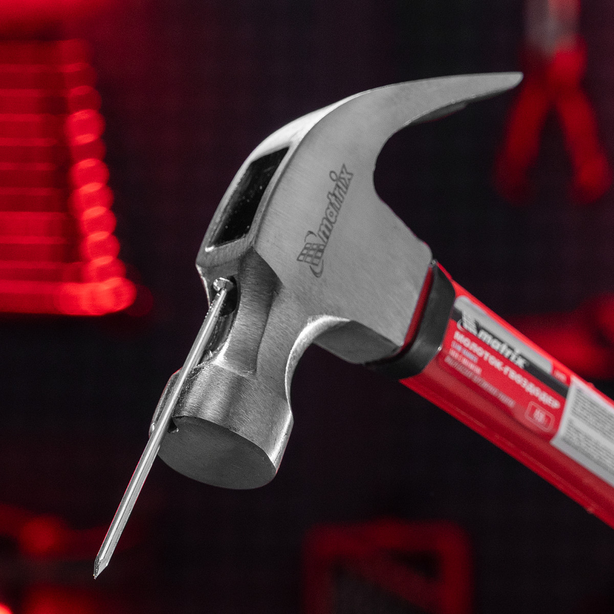 Молоток-гвоздодер, 450 г, боек c магнитом, фибергласовая обрезиненная рукоятка Matrix