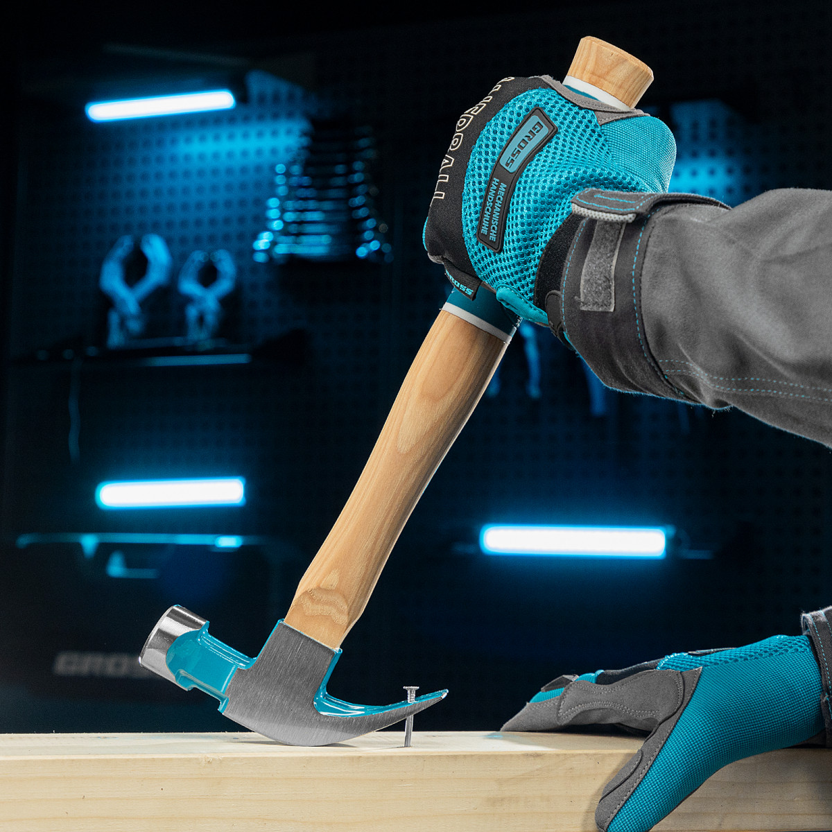 • Встроенный магнит — при помощи паза Nail Starter можно произвести первый удар по гвоздю, не придерживая его рукой, что позволяет эффективно работать даже в труднодоступных местах.
