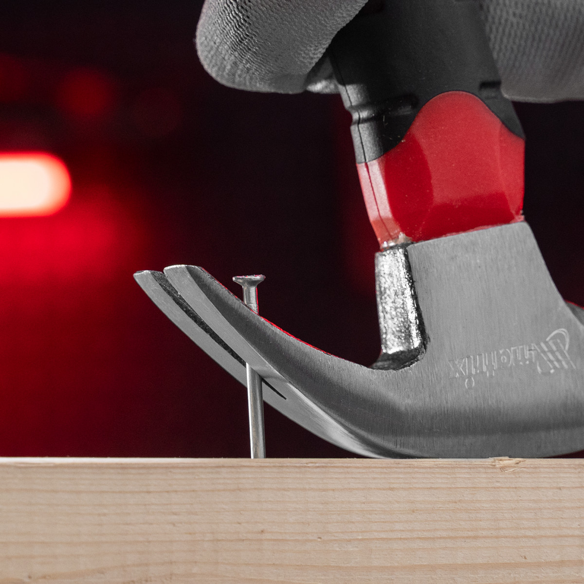 Молоток-гвоздодер мини Matrix 10443 с головкой весом 250 г, бойком с магнитом и фибергласовой двухкомпонентной рукояткой, предназначен для столярных, плотницких и отделочных работ. Благодаря компактным размерам он очень удобен в быту и в поездках. Круглый боек служит для забивания гвоздей, а плоский носок с прорезью — для их выпрямления. Магнитный фиксатор позволяет установить гвоздь в труднодоступном месте, не придерживая его рукой.