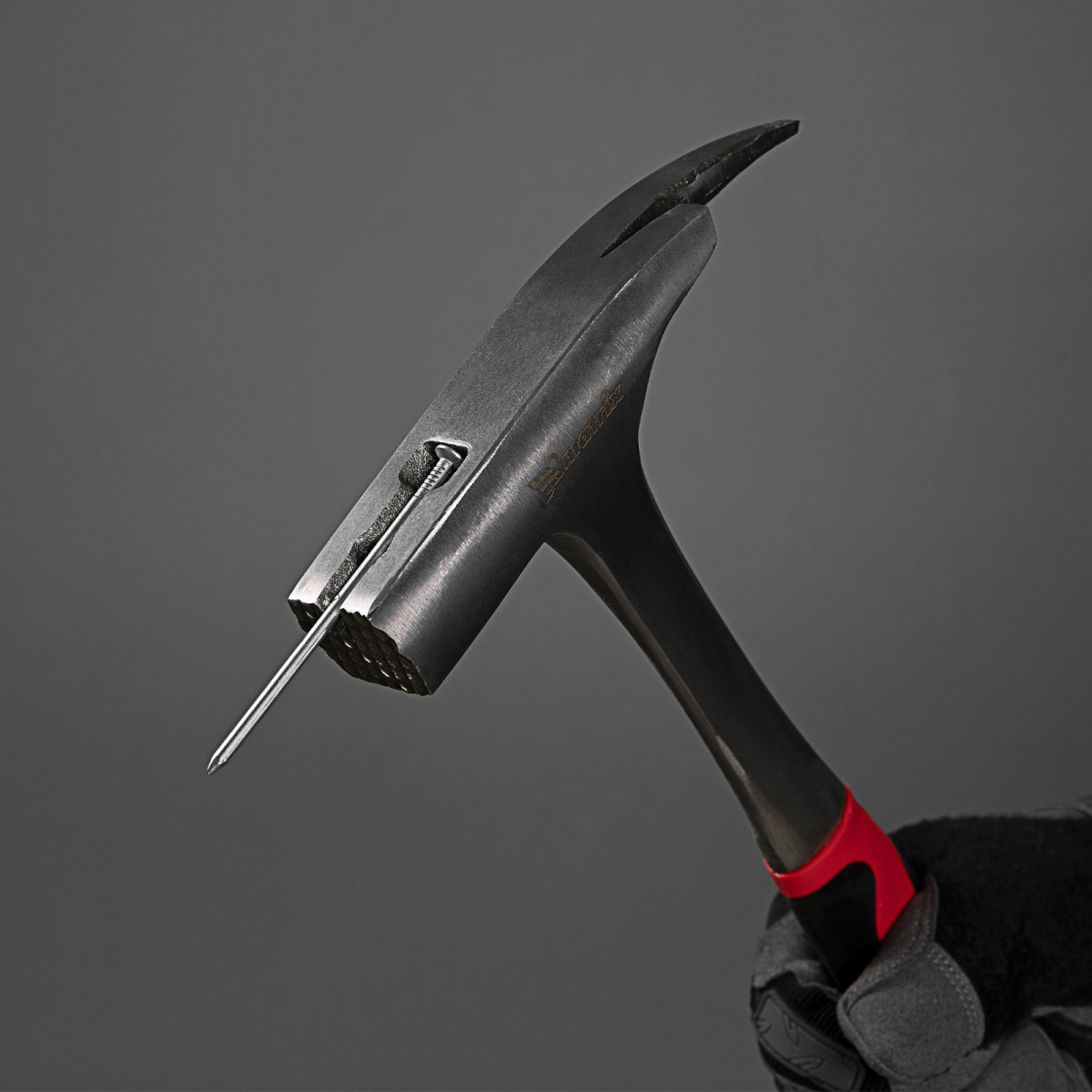 • Магнитный фиксатор удерживает гвоздь в момент первого удара, что позволяет работать в труднодоступных местах, когда нет возможности придержать гвоздь рукой.