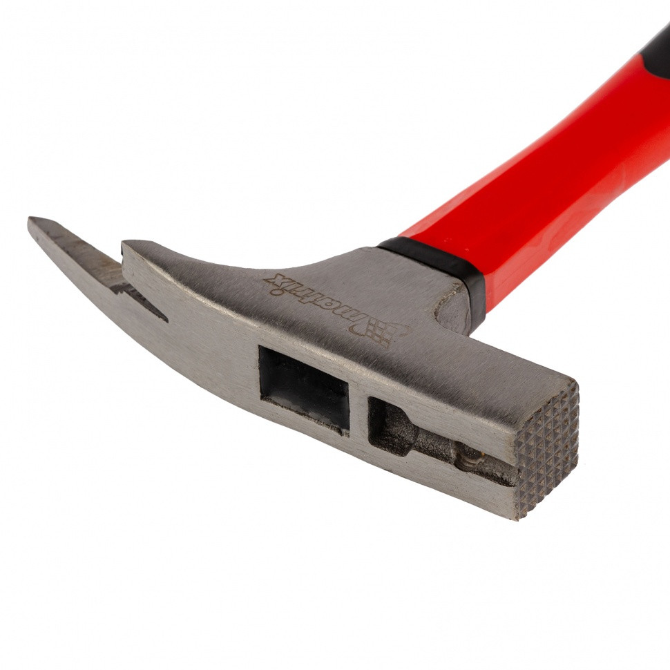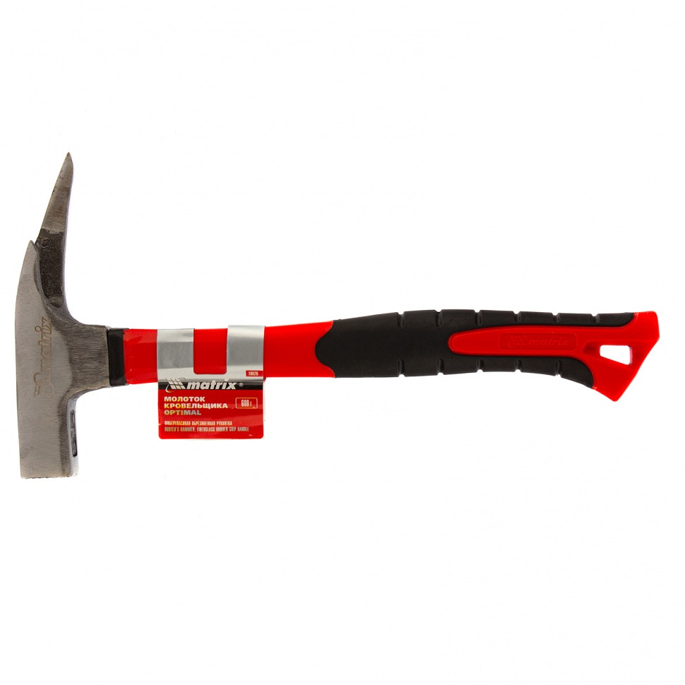 Молоток кровельщика Matrix «optimal» 10626 с головкой весом 600 г и фибергласовой обрезиненной рукояткой — профессиональный ударный инструмент, применяемый при выполнении кровельных работ. Он позволяет забивать и извлекать гвозди для их выпрямления, а также отгибать кромки и пробивать отверстия в кровельном материале. На ударной поверхности бойка имеются глубокие поперечные насечки, предотвращающие соскальзывание с гвоздя.