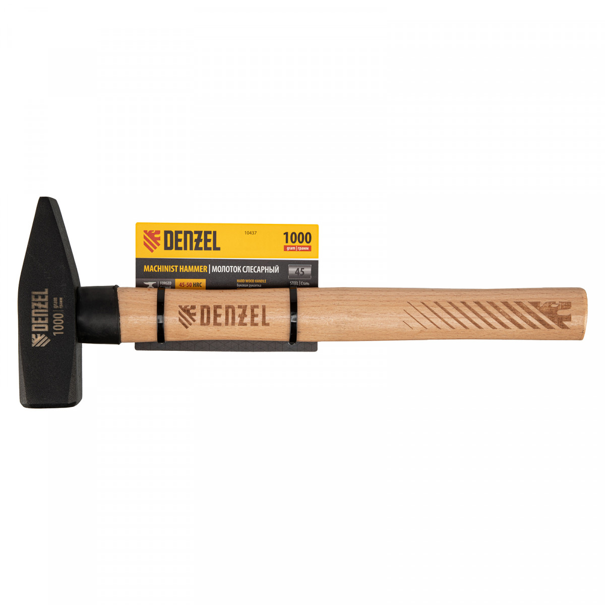 Молоток слесарный, 1000 г, кованый квадратный боек, буковая рукоятка Denzel