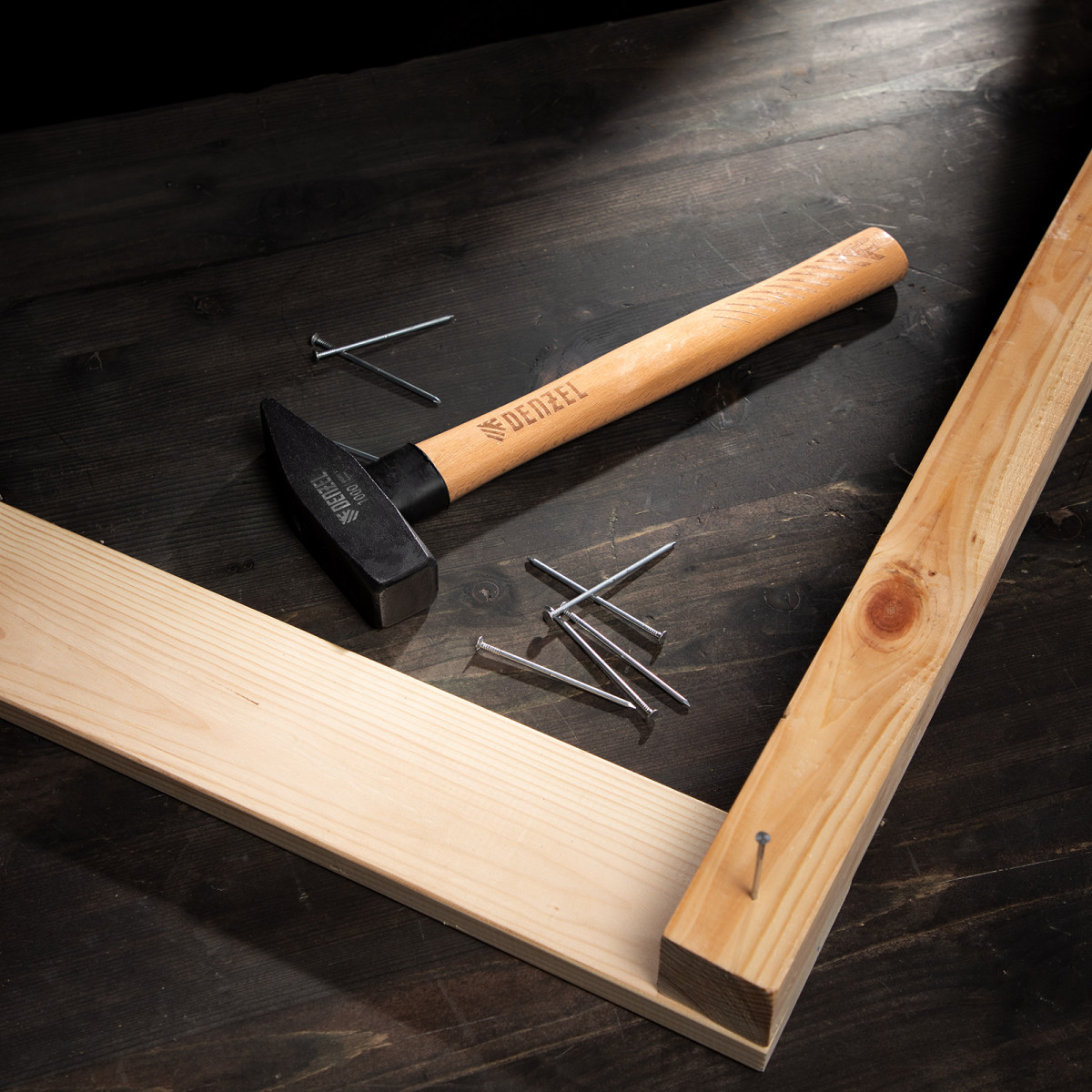 Слесарный молоток Denzel 10437 с квадратным кованым бойком весом 1000 г предназначен для забивания гвоздей и другого крепежа и для работы с металлическими заготовками. Инструмент применяется во время слесарных или столярных работ в быту, также будет полезен профессионалам.