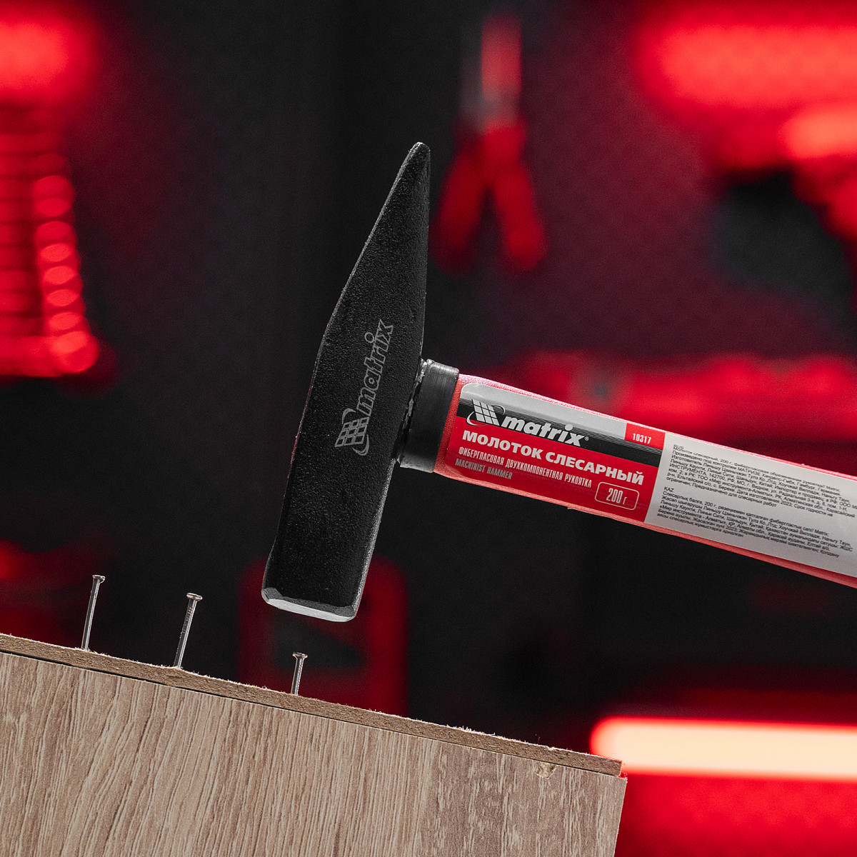 Молоток слесарный, 200 г, фибергласовая обрезиненная рукоятка Matrix