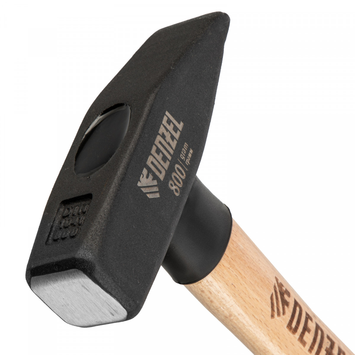 Молоток слесарный, 800 г, кованый квадратный боек, буковая рукоятка Denzel