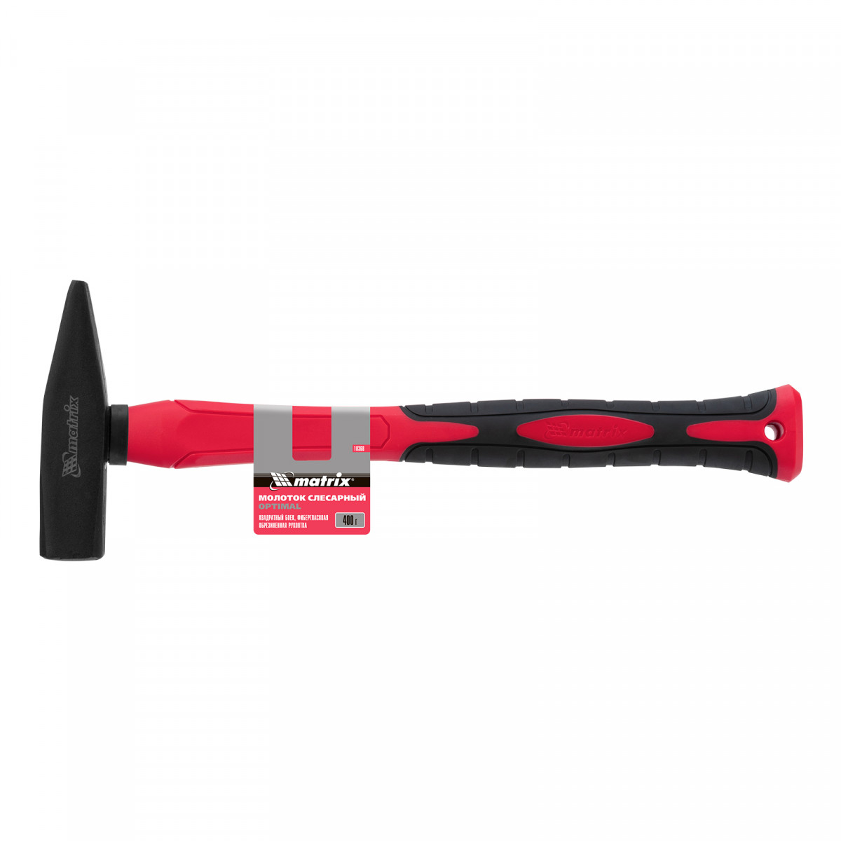 Молоток слесарный optimal, 400 г, фибергласовая обрезиненная рукоятка, квадратный боек Matrix