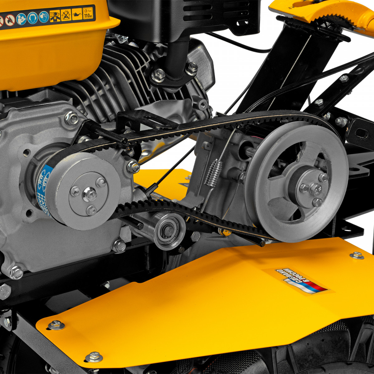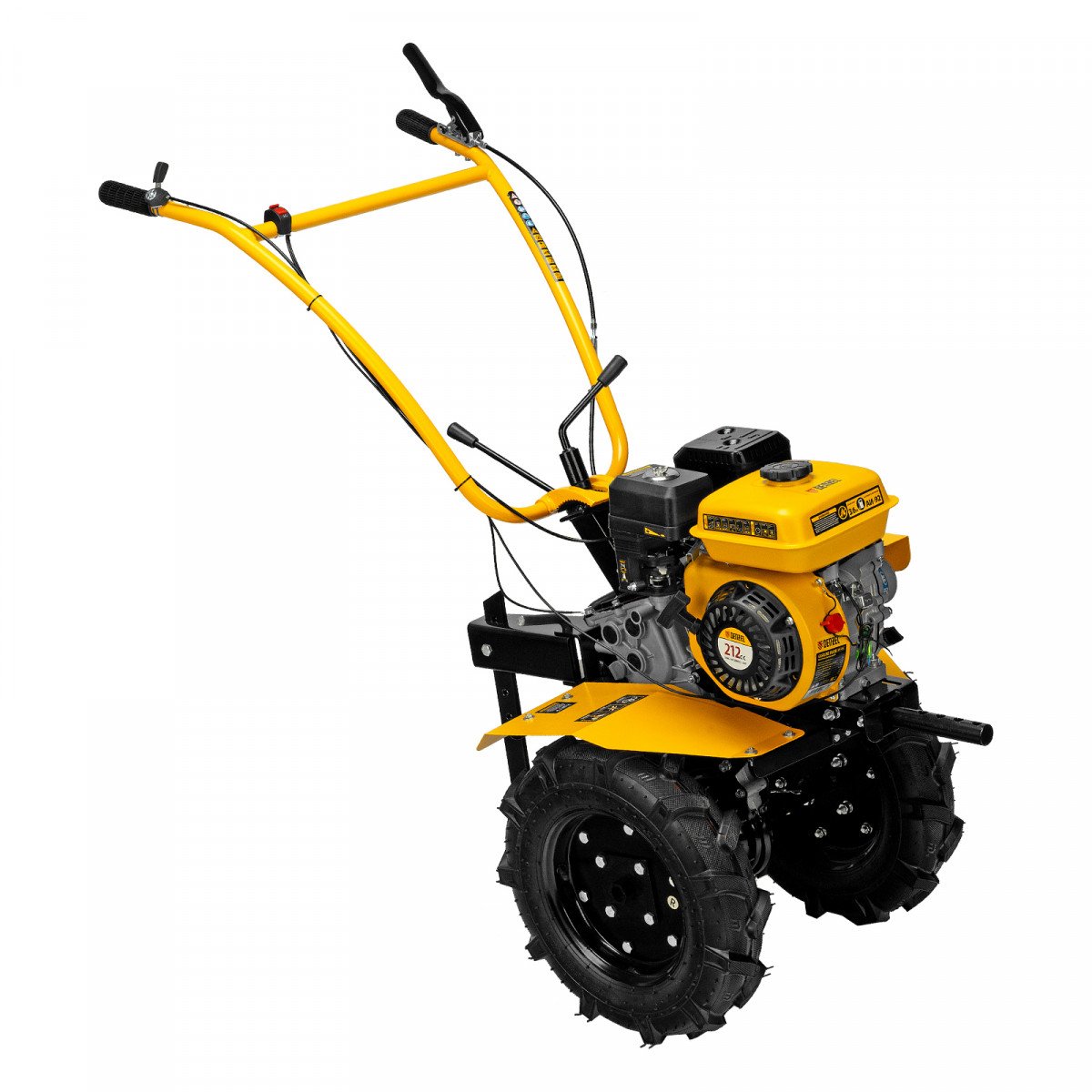 - Удобная работа — основные элементы управления расположены на рукоятках, для включения сцепления и регулировки оборотов двигателя не нужно наклоняться.