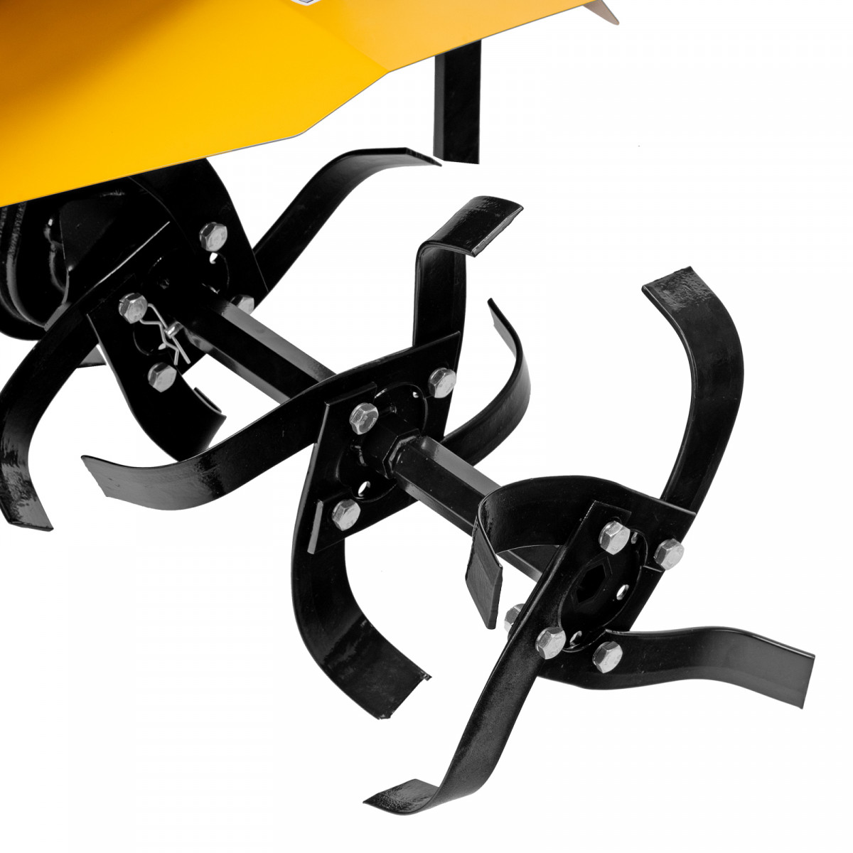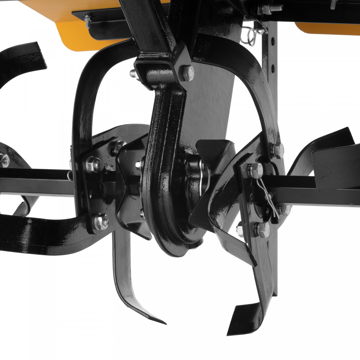 • Настраиваемая глубина вспашки — степень погружения фрез в почву можно задать, отрегулировав сошник по высоте.