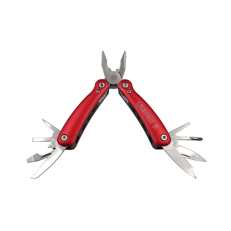 Индекс PF-MT-17 получил складной мультитул, что включает 9 инструментов. В сложенном виде он имеет длину не больше 7,5 см и без проблем поместится в любой карман. Эксперты Следопыт сделали модель из высокопрочной нержавейки, которая не боится частых контактов с влагой, износа и долговечная. Рукояти с двух сторон дополнены рифлеными пластиковыми накладками, что уменьшает скольжение. В разложенном виде модель представляет собой пассатижи с пружинным механизмом, которыми удобно манипулировать одной рукой. С каждой стороны предусмотрено еще по несколько инструментов в рукояти: от серрейторного и прямого ножей до отверток. Есть крепежное кольцо, чтобы пристегнуть мультитул к карабину. Плотный чехол в комплекте также можно повесить на пояс.