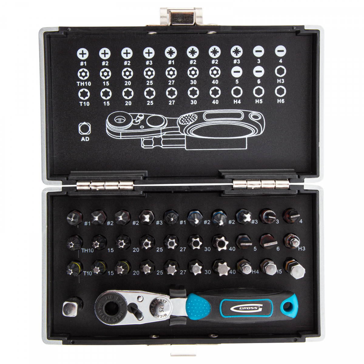 Набор бит, 1/4, магнитный адаптер, сталь S2, пластиковый кейс, 33 предмета Gross