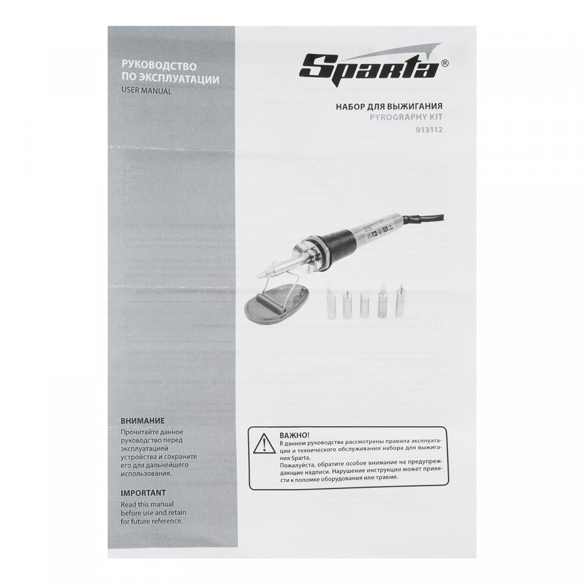 Набор для выжигания, 7 предметов: паяльник 30 Вт, подставка, жала сменные Sparta
