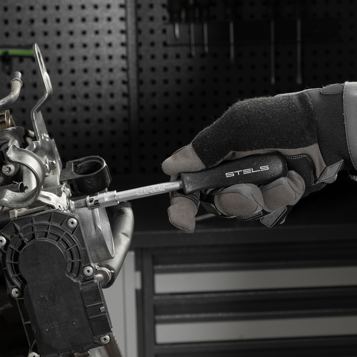 • Устойчивость к высоким нагрузкам — инструменты изготовлены из высокопрочной закаленной стали CrV, биты-вставки выполнены из японской легированной стали S2.