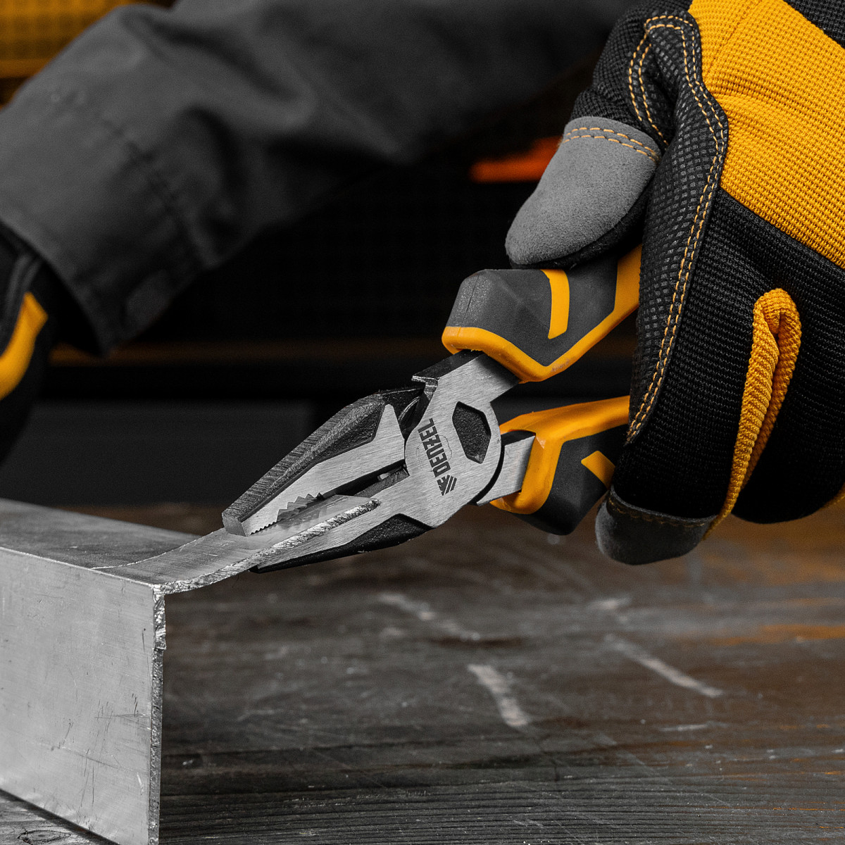 - Эффективная работа плоскогубцами — шарнир смещен к режущим кромкам, что увеличивает усилие сжатия на 20%.