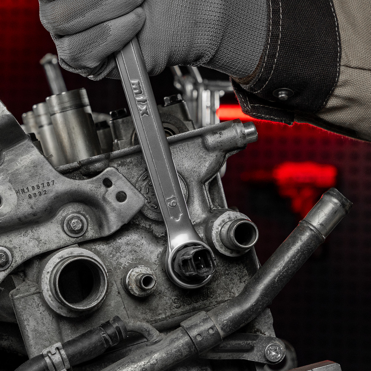 • Комфортная и эффективная работа — ключи-трещотки с 45 зубьями оснащены механизмом быстрого сброса, переключателем реверса с металлическим флажком и двухкомпонентной рукояткой.