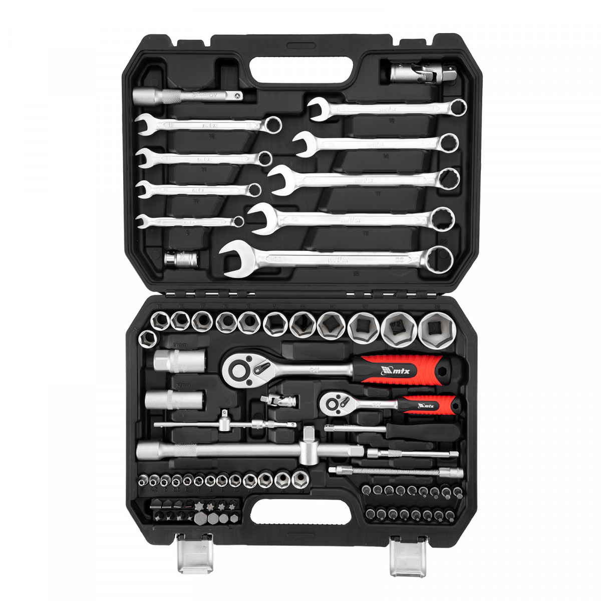 Набор инструментов, 1/2", 1/4", пластиковый кейс, 82 предмета MTX