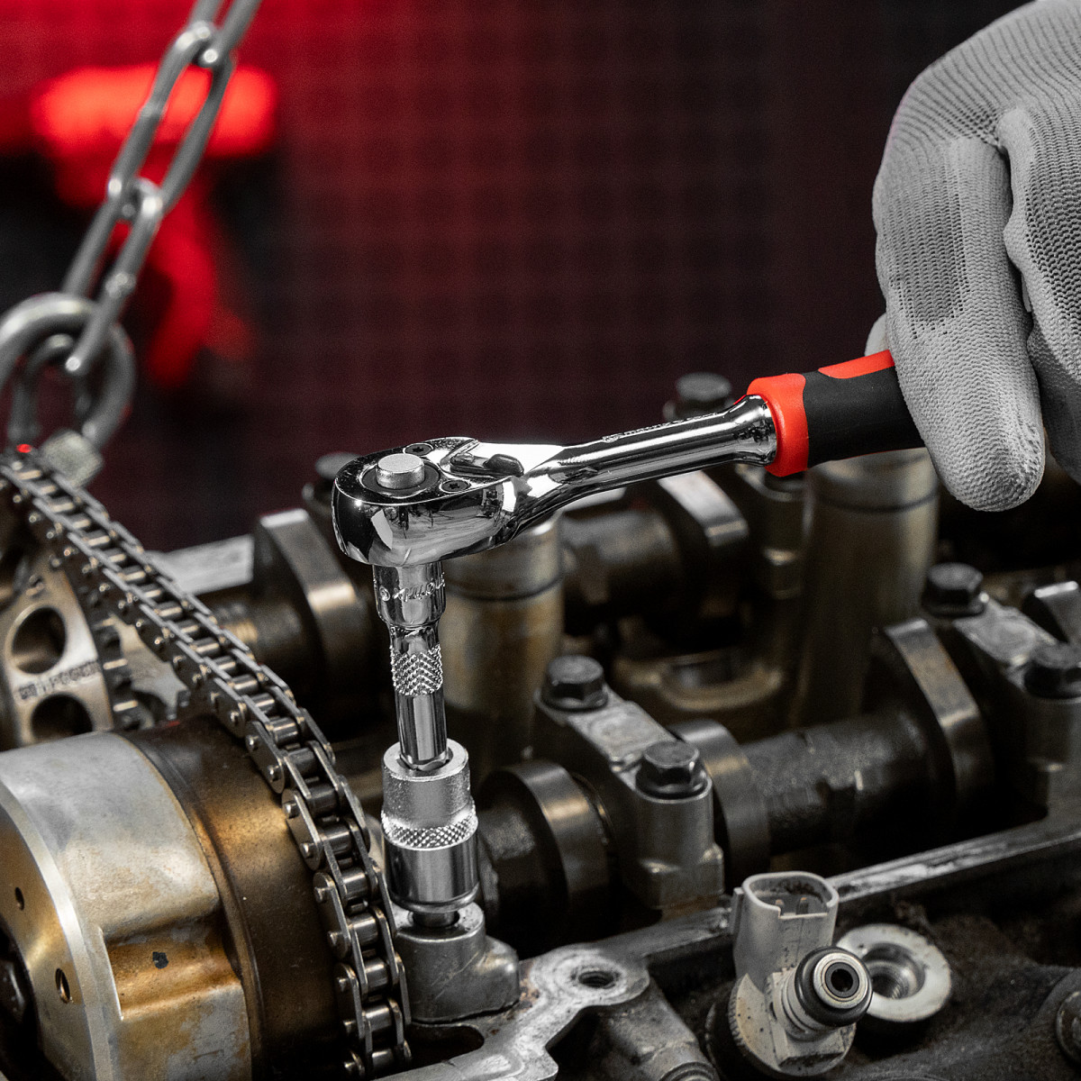 • Быстрая замена головок — кнопка сброса на трещотке позволяет мгновенно снять насадку.
