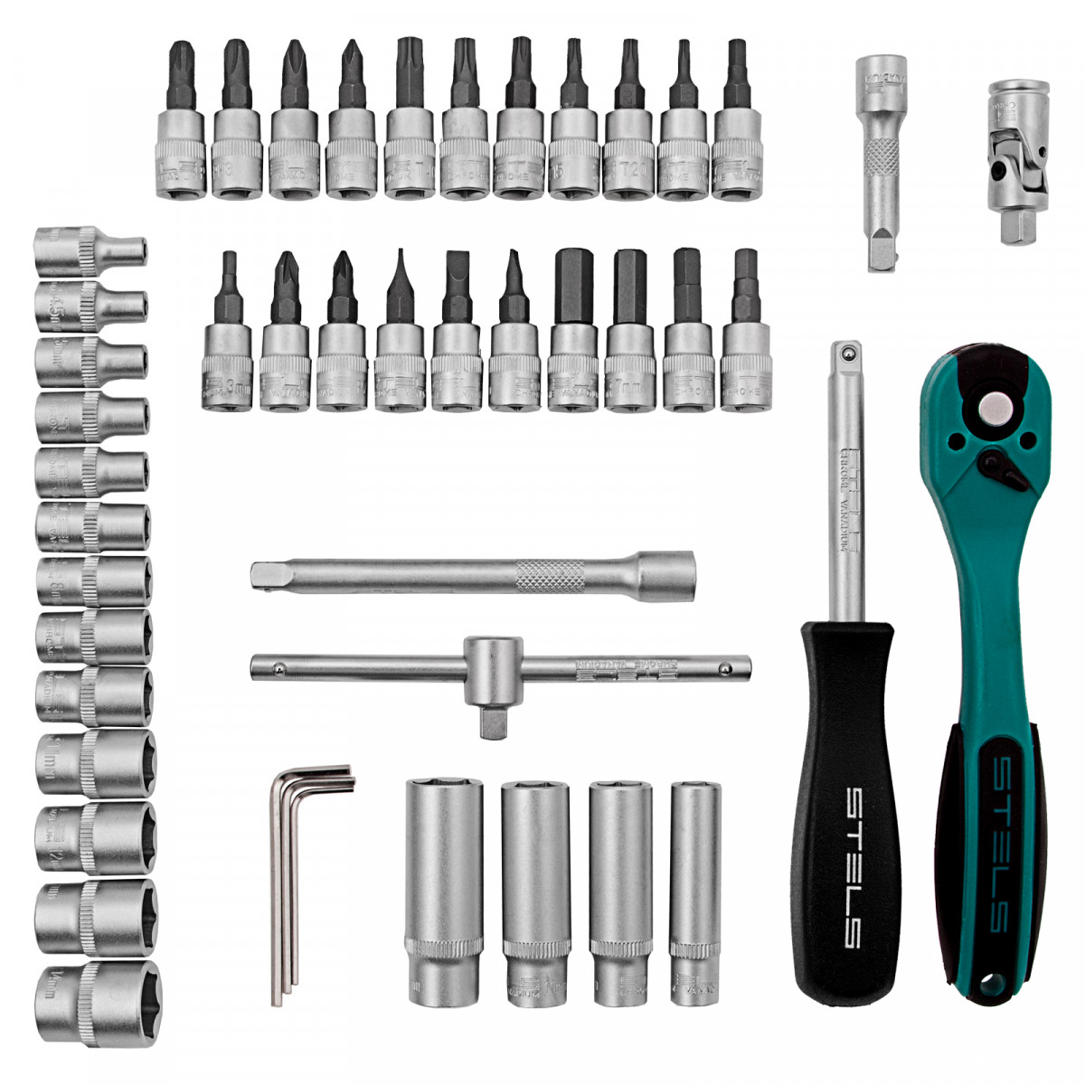• Устойчивость к высоким нагрузкам — инструменты изготовлены из высокопрочной закаленной стали CrV, биты выполнены из японской легированной стали S2.