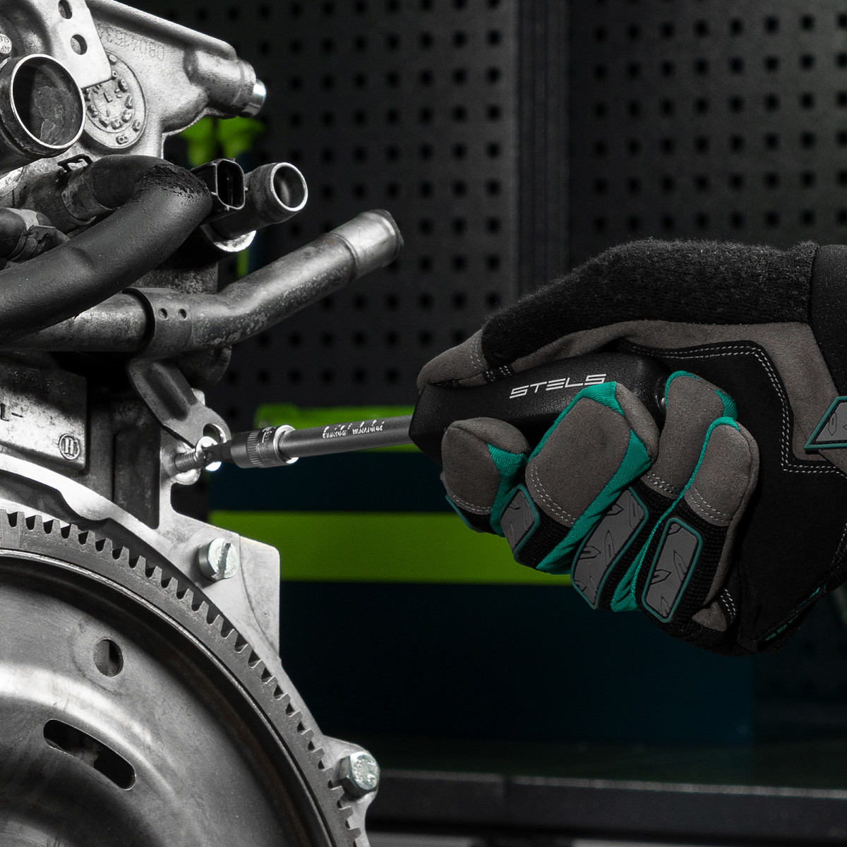 Ключ-трещотка с 72 зубьями обеспечивает рабочий шаг всего 5°.