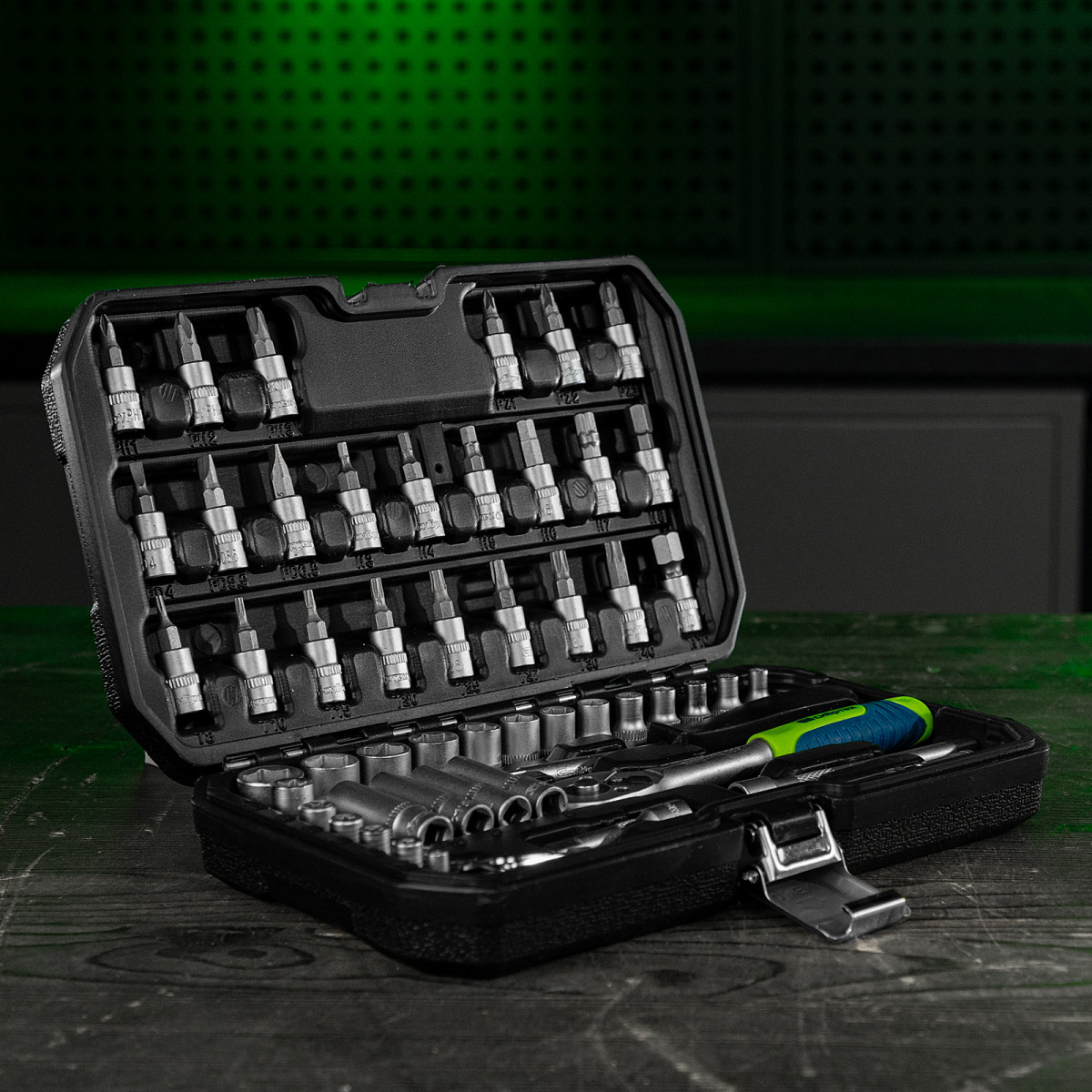 • Комфортная и эффективная работа — ключи-трещотки с 45 зубьями оснащены механизмом быстрого сброса, переключателем реверса с металлическим флажком и двухкомпонентной рукояткой.