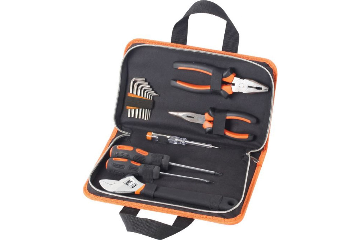 Набор домашнего мастера Кратон HMS-02/14 2 12 14 002 поставляет в компактном пенале с ручками для переноски. Набор подойдет для выполнения различных бытовых задач. Комплект подойдет для монтажа и демонтажа крепежа, удержания мелких деталей и т.п. Рукоятки изготовлены из двухкомпонентного материала. Рабочие части инструментов выполнены из высококачественной стали.