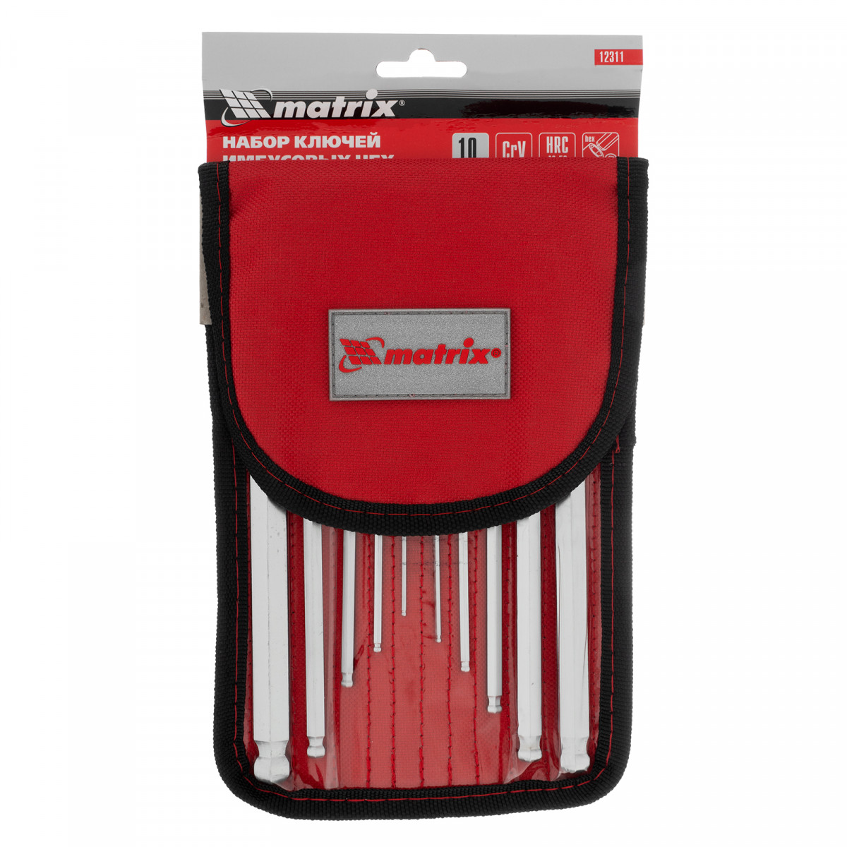 Набор Matrix 12311 в чехле, включающий 10 удлиненных имбусовых сатинированных ключей HEX с шаром, из стали CrV, размером 1,5-12 мм, пригодится как начинающему мастеру, так и профессионалу. Ключи применяются при работе с крепежом, имеющим внутренний шестигранник. С их помощью можно собрать мебель или решить мелкие бытовые задачи. Шарообразные наконечники позволяют работать под углом, что удобно в условиях ограниченного пространства.
